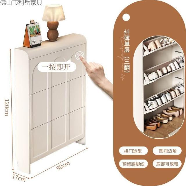 優選傢俱 免運費 奶油風超薄翻鬥鞋櫃家用門口2025新款爆款入戶玄關櫃一體收納鞋架