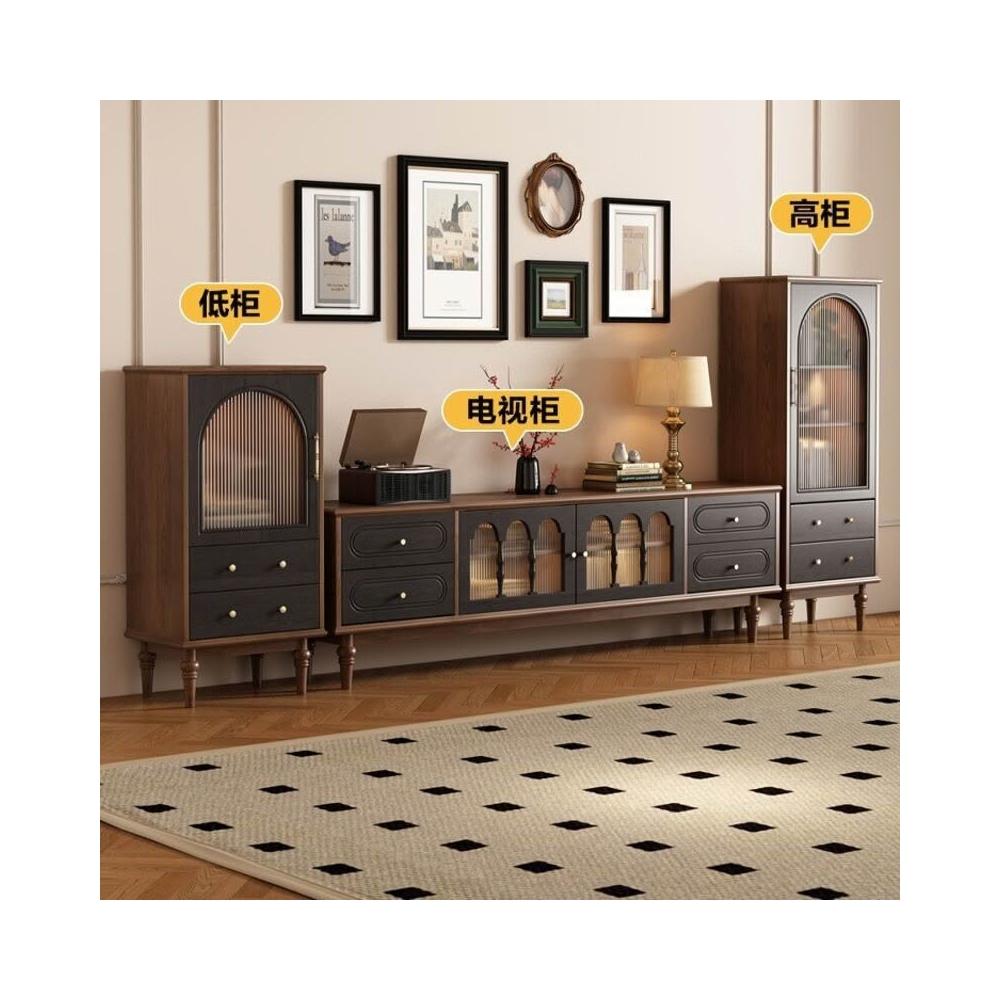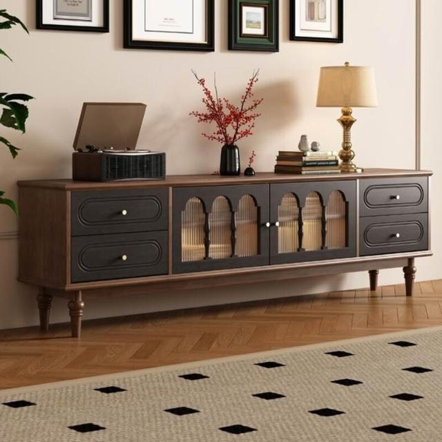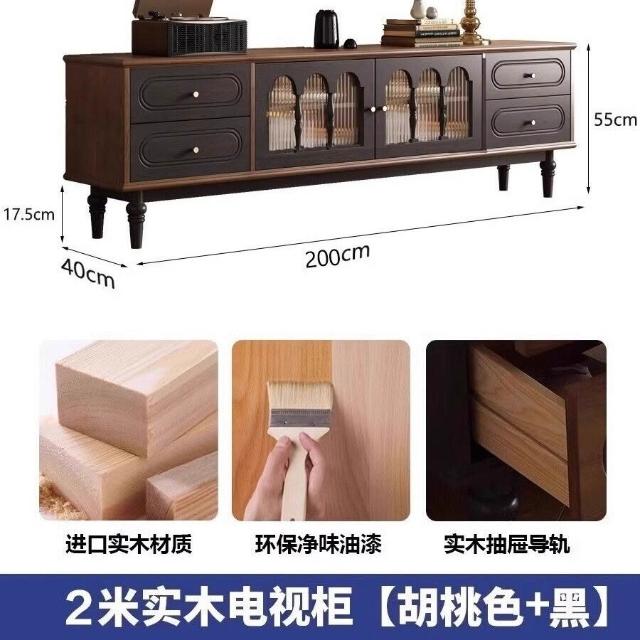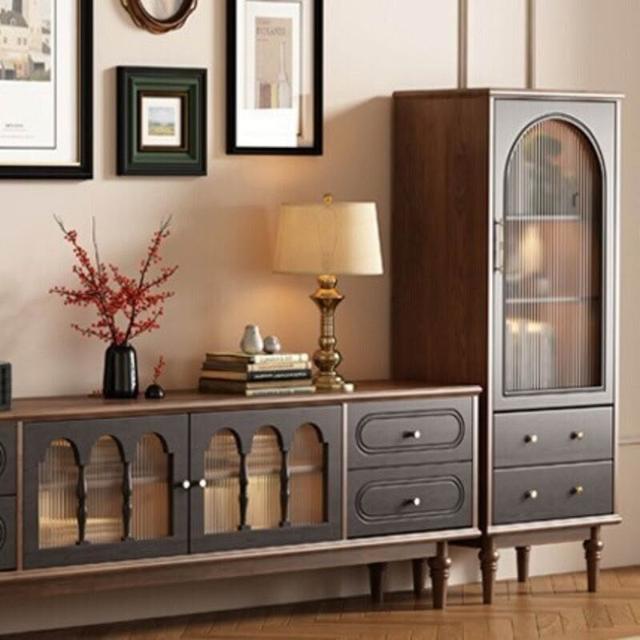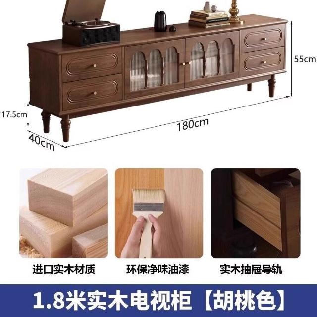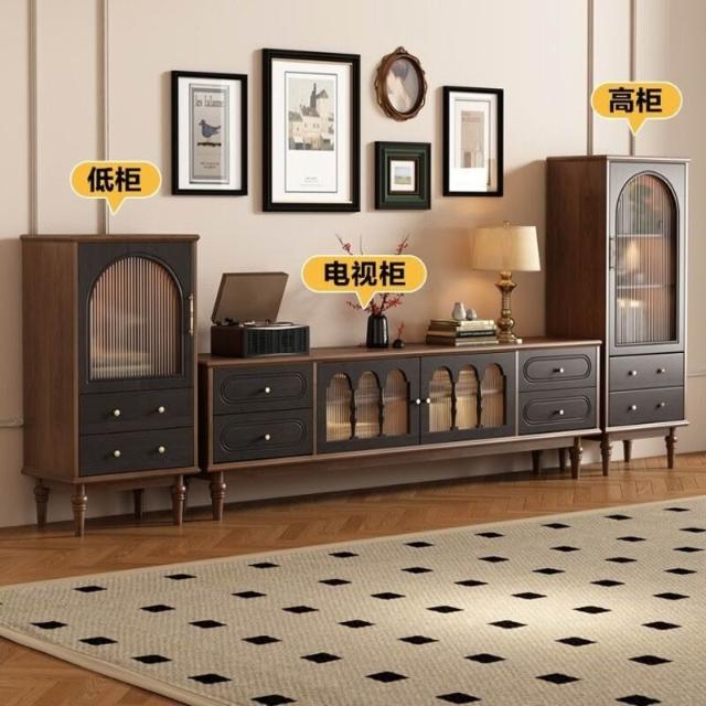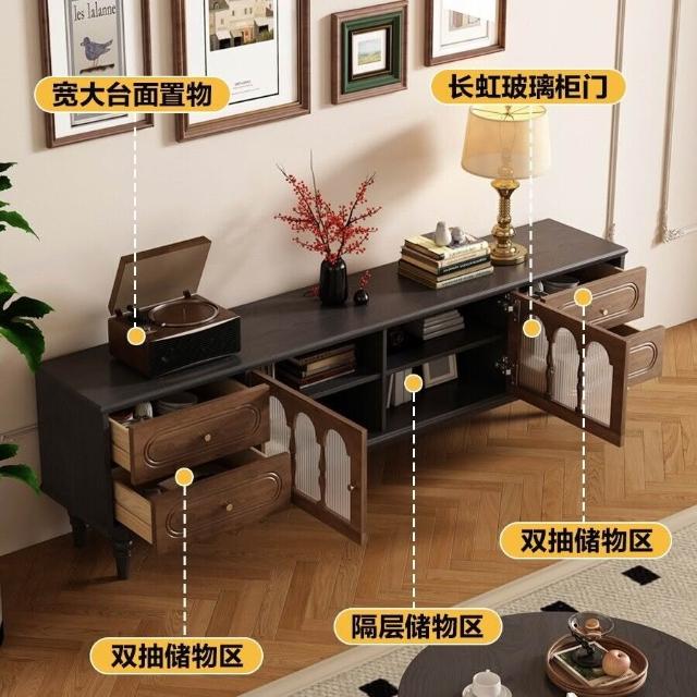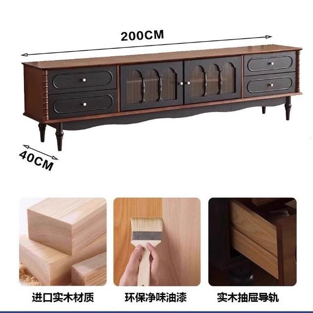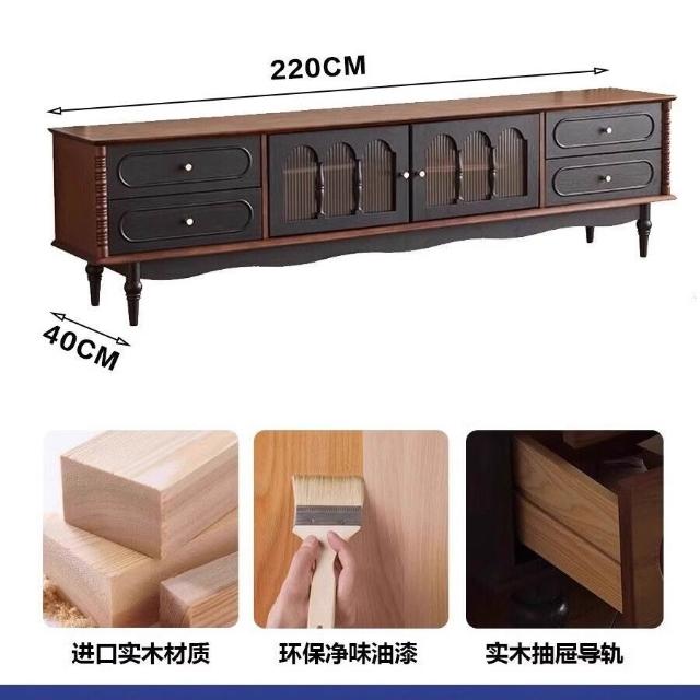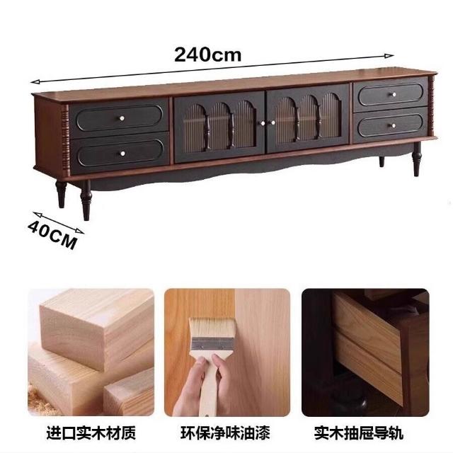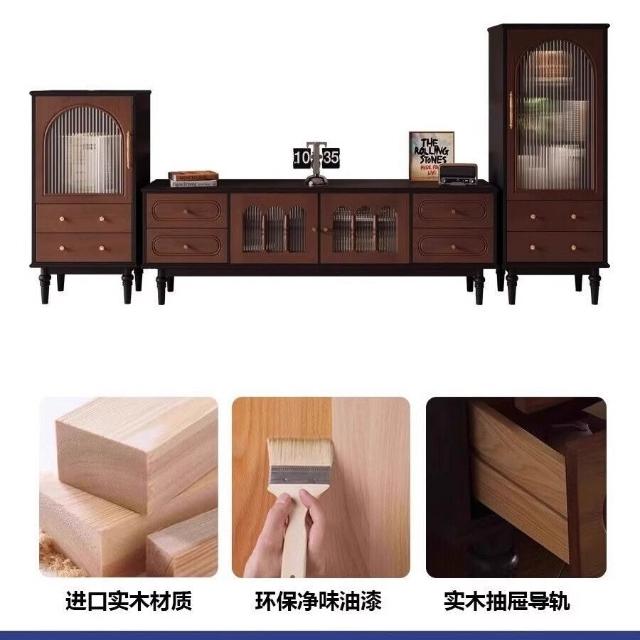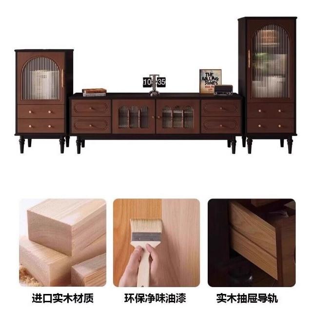 優選傢俱 免運費 法式復古實木電視櫃茶幾組合客廳家用小戶型收納儲物櫃子美式地櫃