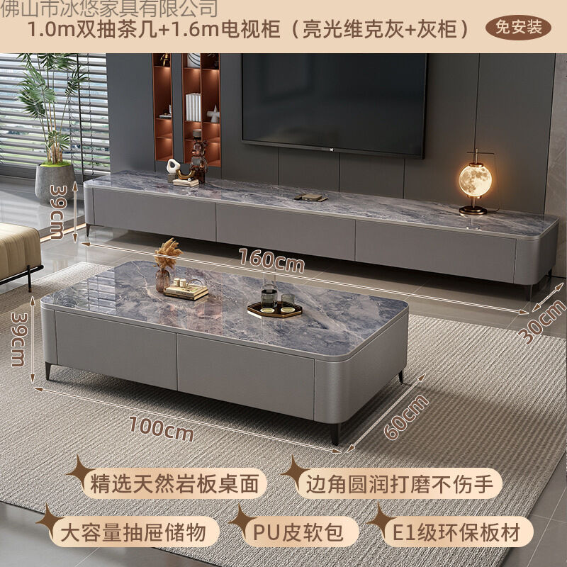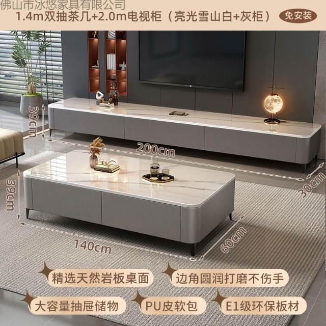 優選傢俱 免運費 巖板茶幾客廳家用2025新款小戶型輕奢現代簡約落地電視櫃組合