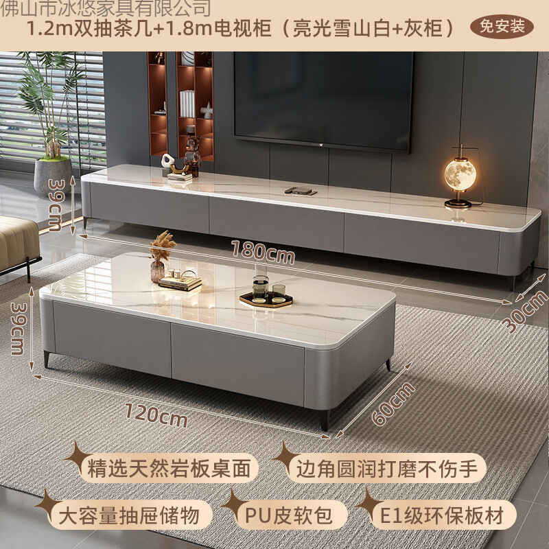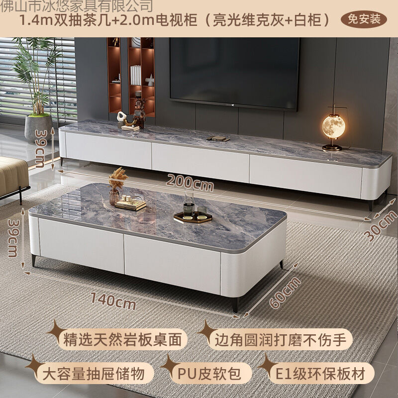 優選傢俱 免運費 巖板茶幾客廳家用2025新款小戶型輕奢現代簡約落地電視櫃組合