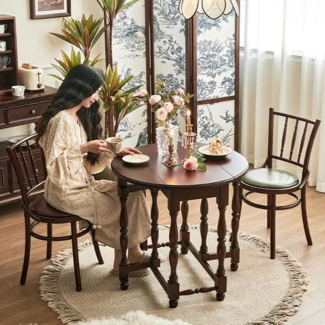 優選傢俱 免運費 法式中古風餐桌全實木蝴蝶桌復古折疊桌陽臺客廳家用小戶型咖啡桌