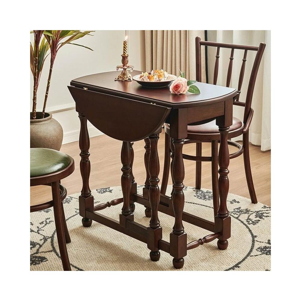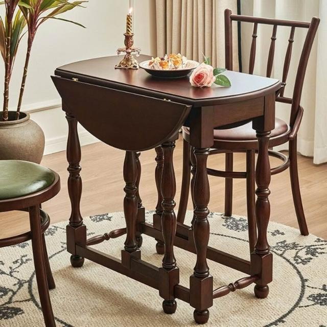 優選傢俱 免運費 法式中古風餐桌全實木蝴蝶桌復古折疊桌陽臺客廳家用小戶型咖啡桌