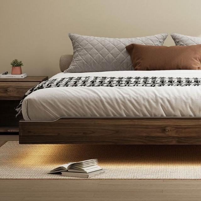 優選傢俱 免運費 黑胡桃木色榻榻米無床頭床懸浮床小戶型臥室日式中古風實木地臺床