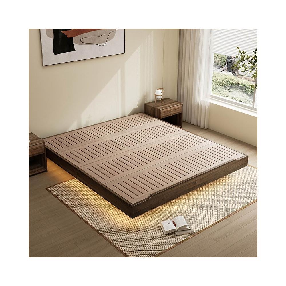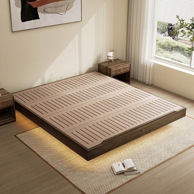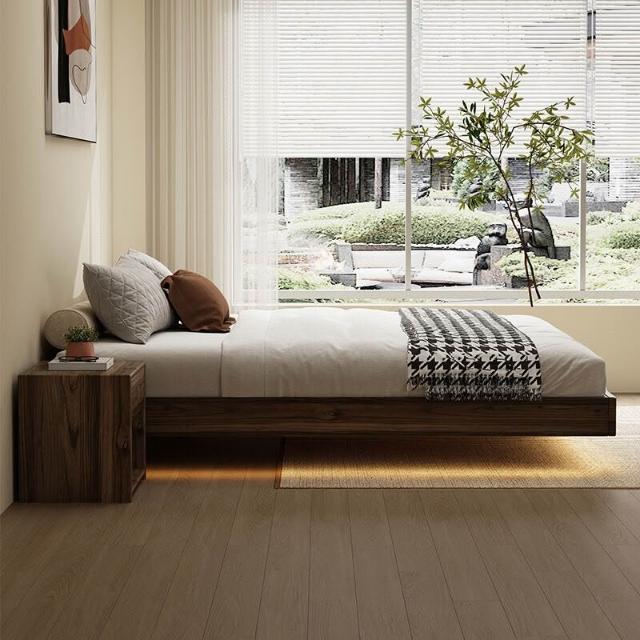 優選傢俱 免運費 黑胡桃木色榻榻米無床頭床懸浮床小戶型臥室日式中古風實木地臺床
