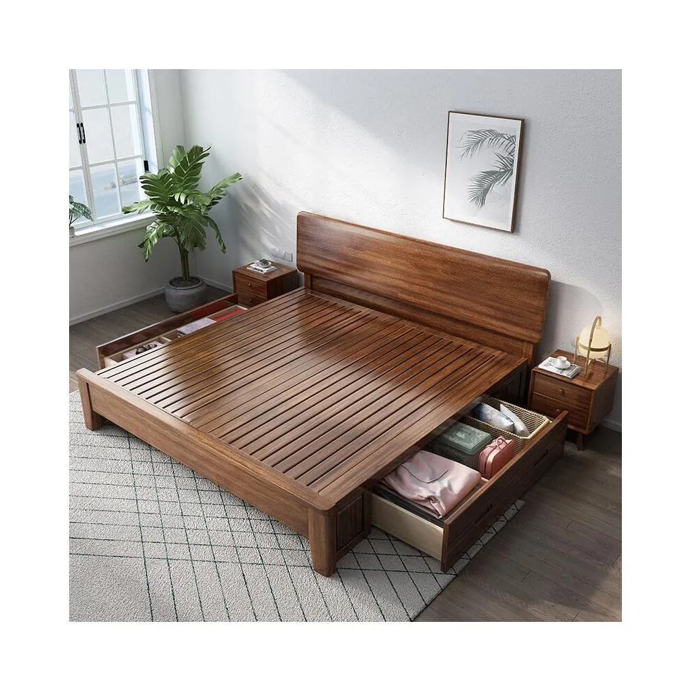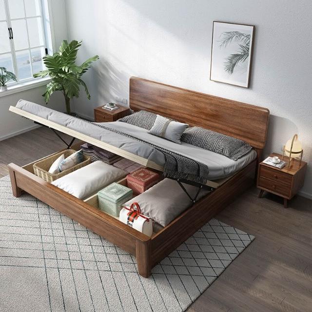 優選傢俱 免運費 簡約實木床1米8胡桃木雙人床主臥實木床1米5家用實木床全實木床架