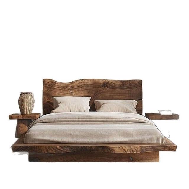優選傢俱 免運費 實木床雙人床侘寂風原木床落地式小戶型主臥民宿家用穩固耐用床架
