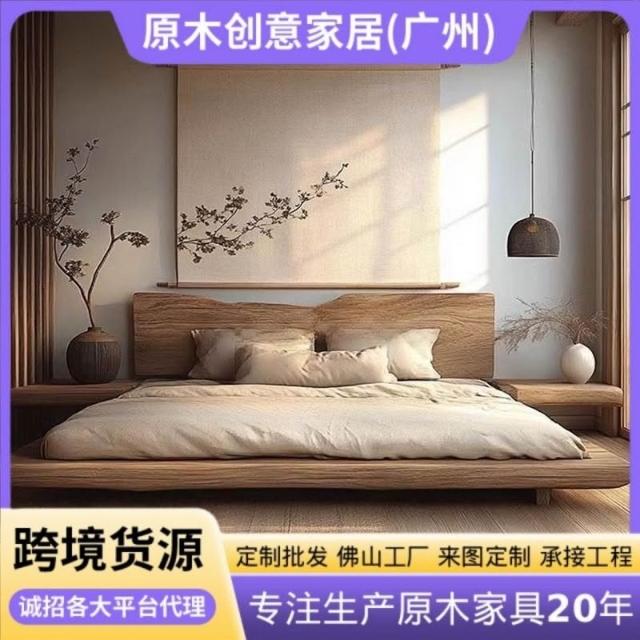 優選傢俱 免運費 實木床雙人床侘寂風原木床落地式小戶型主臥民宿家用穩固耐用床架