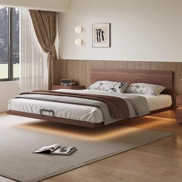優選傢俱 免運費 極薄床頭純實木北歐白蠟木床新款榉木排骨架現代簡約小戶型懸浮床