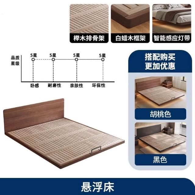 優選傢俱 免運費 極薄床頭純實木北歐白蠟木床新款榉木排骨架現代簡約小戶型懸浮床