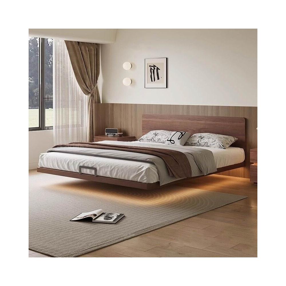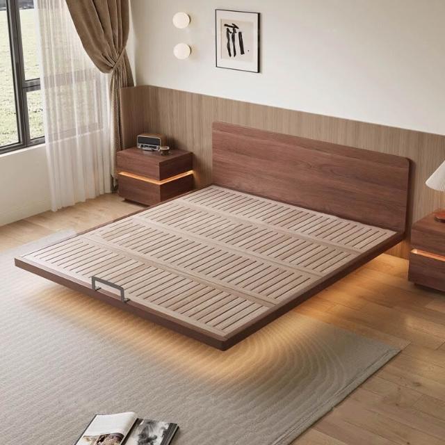 優選傢俱 免運費 極薄床頭純實木北歐白蠟木床新款榉木排骨架現代簡約小戶型懸浮床