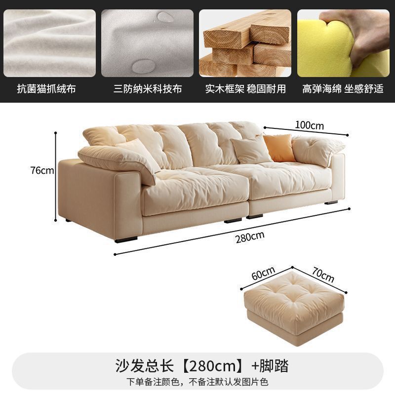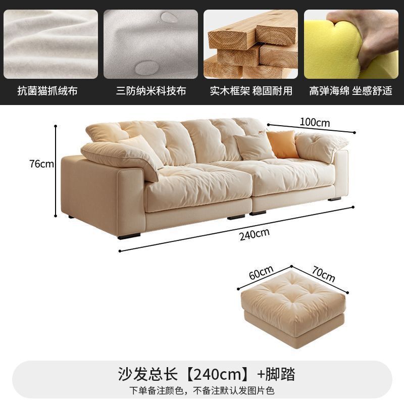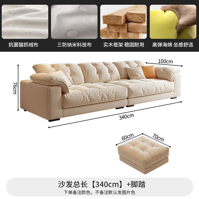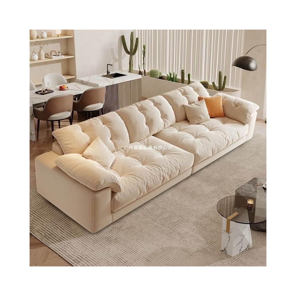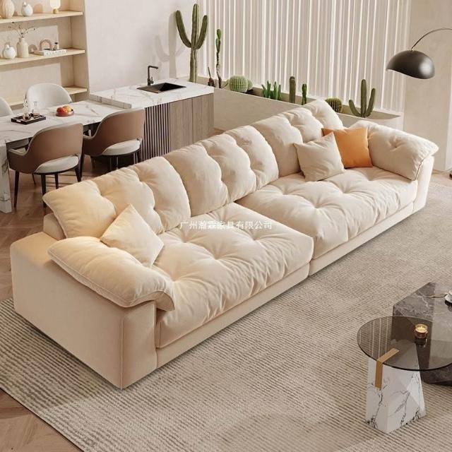 優選傢俱 免運費 布藝沙發客廳意式奶油風科技現代簡約三人位直排慵懶風雲朵沙發