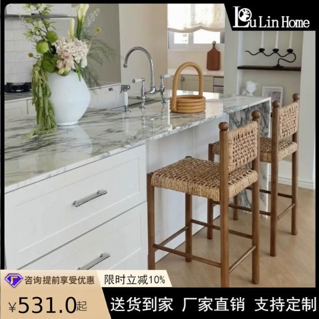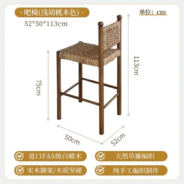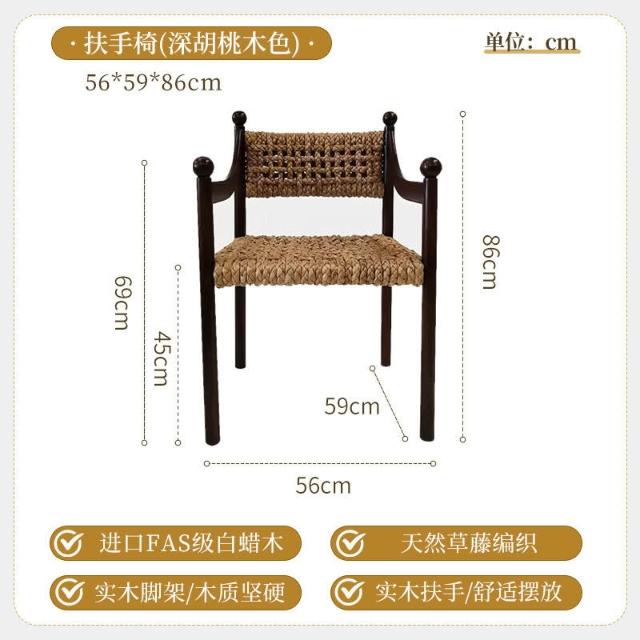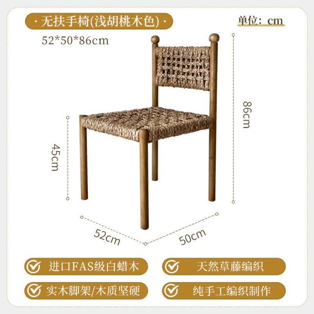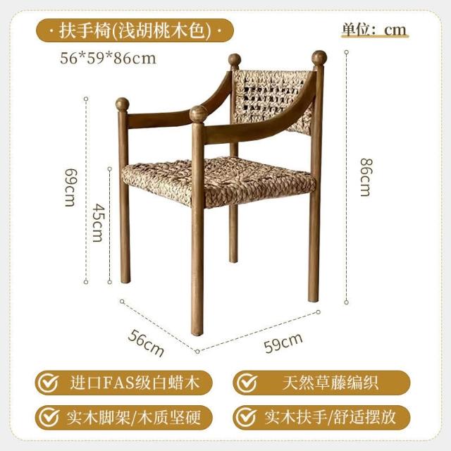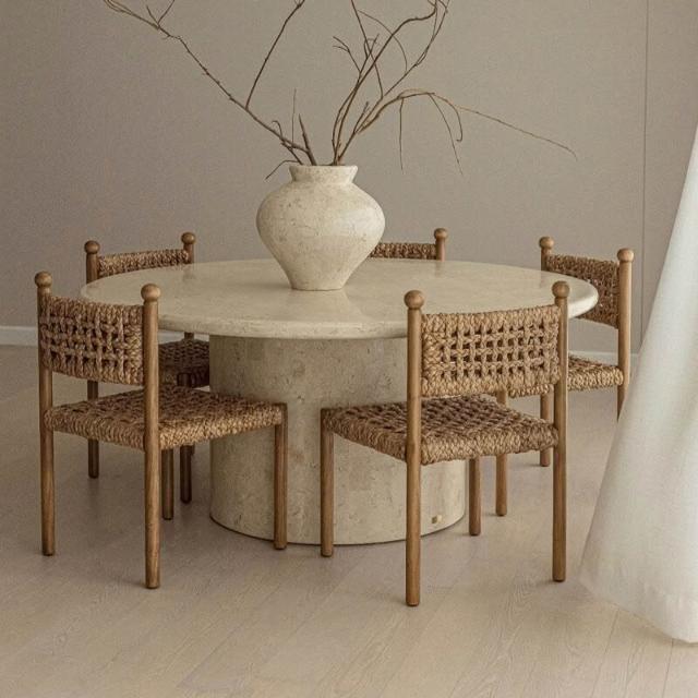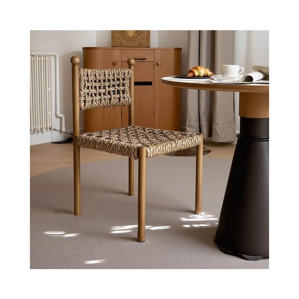 優選傢俱 免運費 法式侘寂風實木餐椅家用餐廳繩編靠背椅設計師款酒店咖啡廳洽談椅