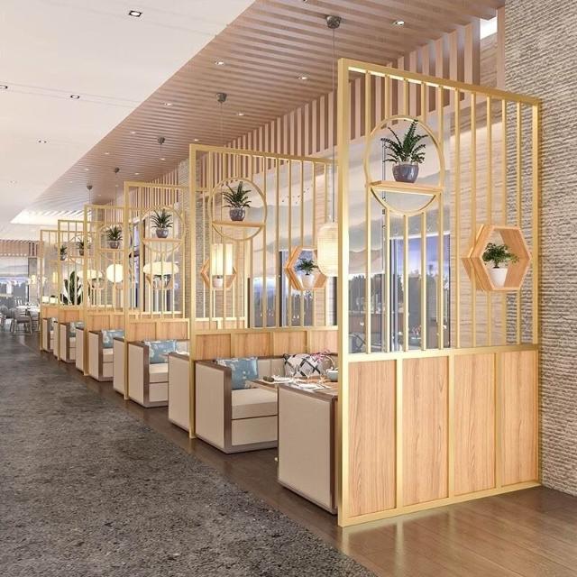 優選傢俱 免運費 新中式鐵藝屏風餐廳玄關隔斷火鍋燒烤店卡座圍欄裝飾镂空格柵卡座