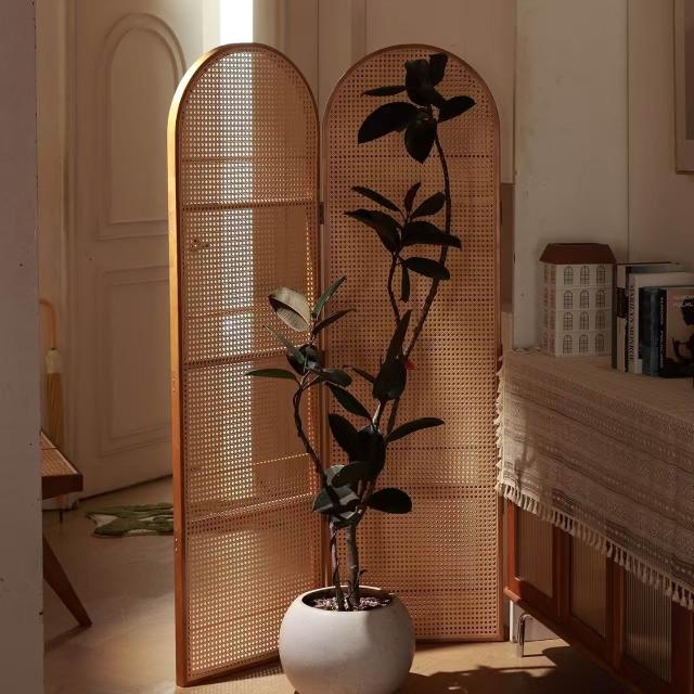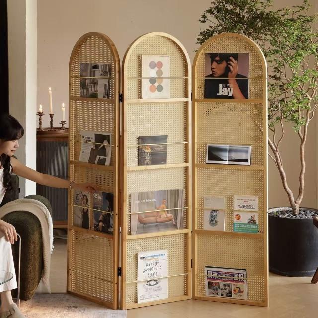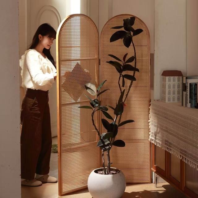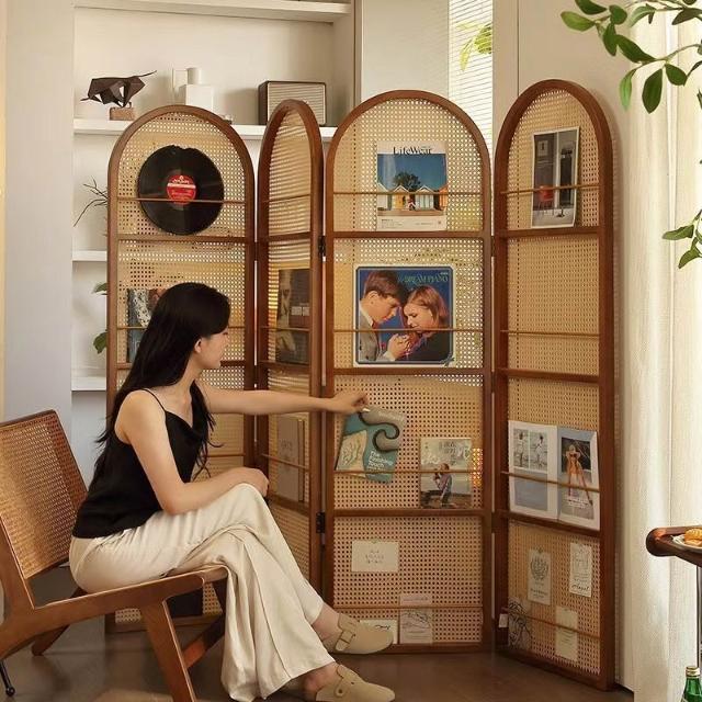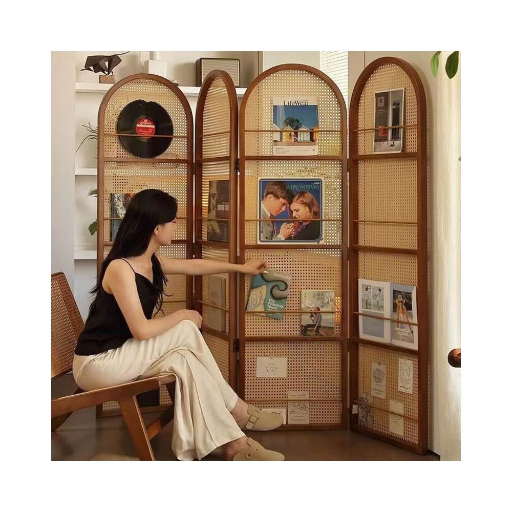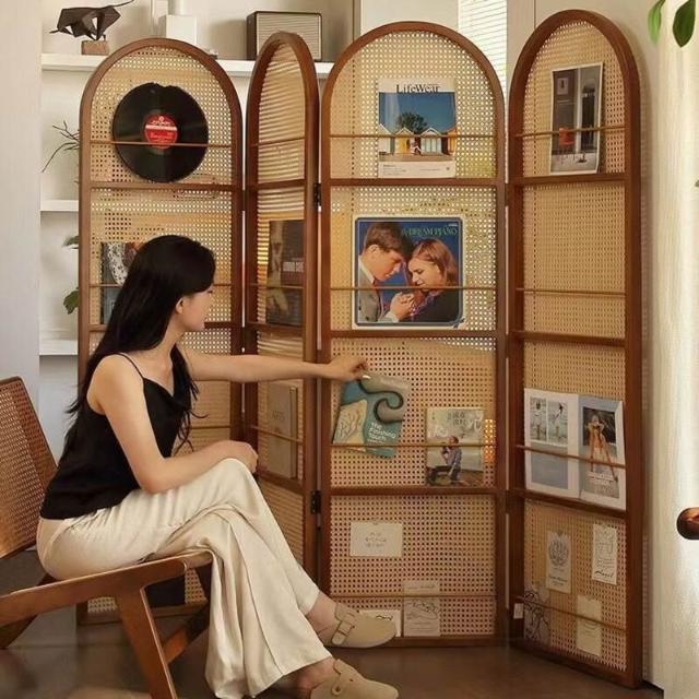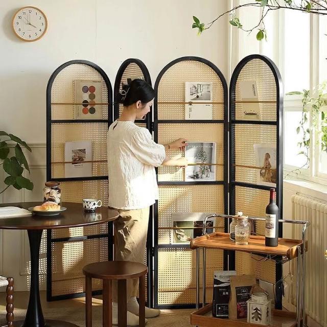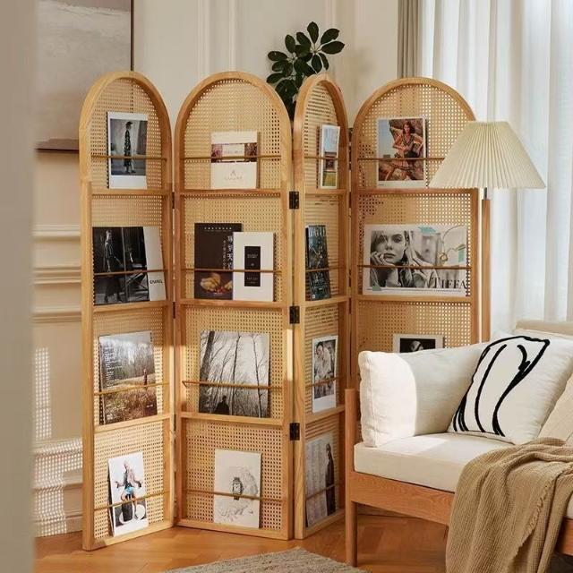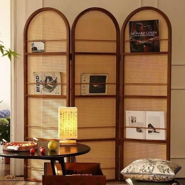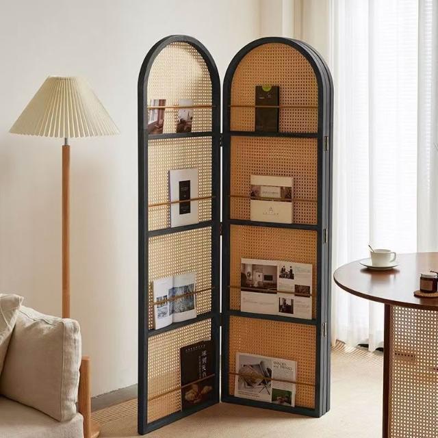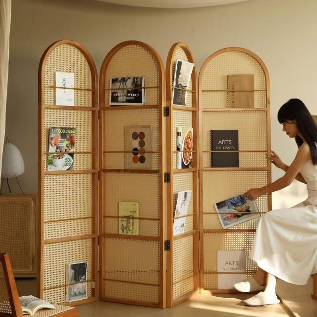 優選傢俱 免運費 中復古移動藤編折疊屏風客廳臥室玄關入戶正對門法式隔斷置物書架