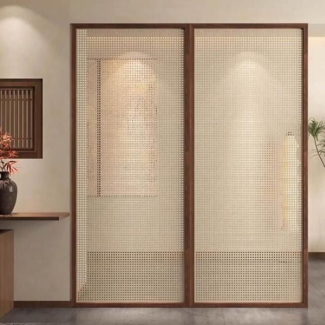 優選傢俱 免運費 新中式屏風隔斷客廳現代簡約實木藤編遮擋家用玄關辦公室民宿酒店