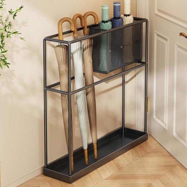 優選傢俱 免運費 雨傘架家用門口放傘收納架門後夾縫放傘桶鐵藝商用瀝水傘架置物架