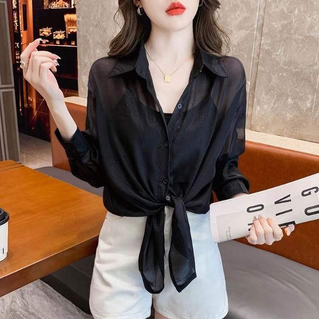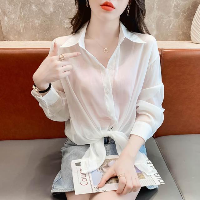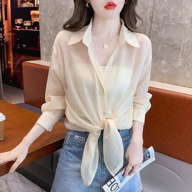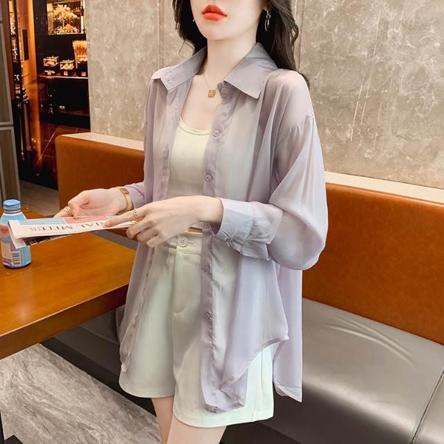 襯衫 通勤 休閑 百搭 時尚冰絲防曬衣女夏天薄款防紫外線寬松開衫外套新款雪紡襯衫 優選傢俱