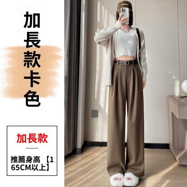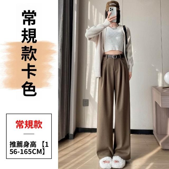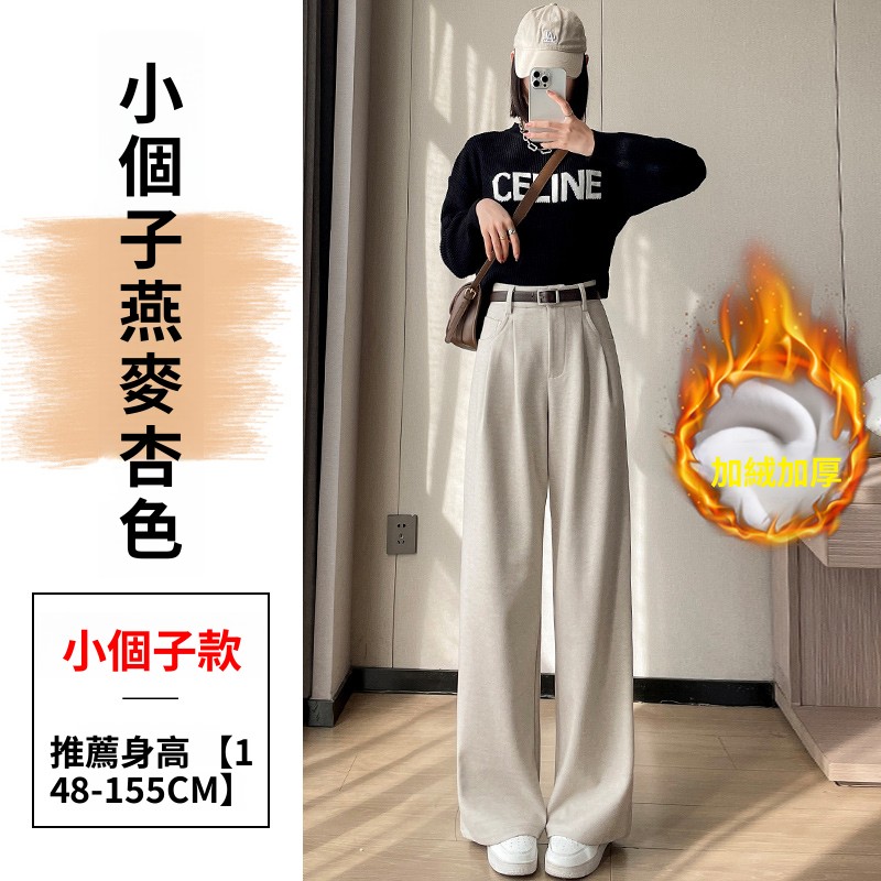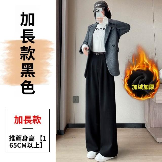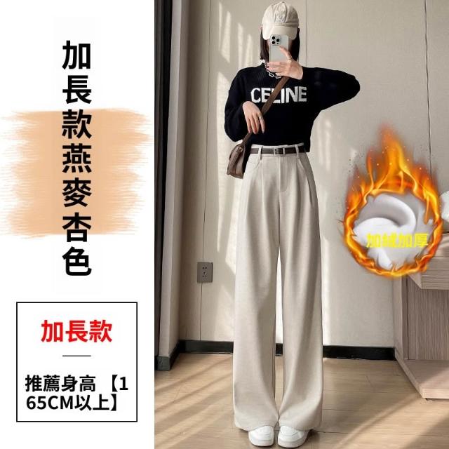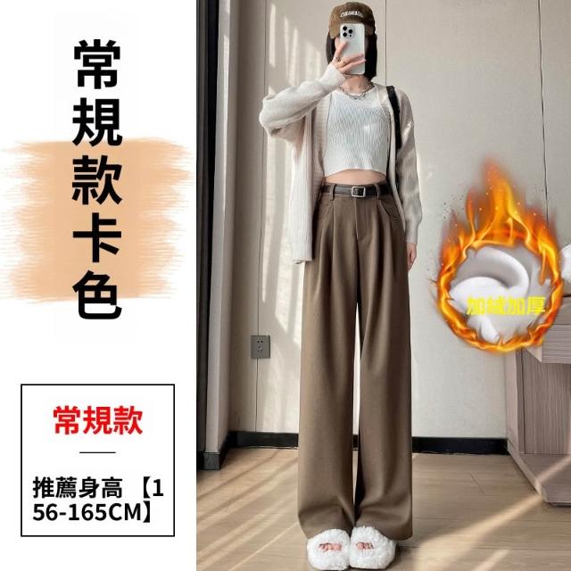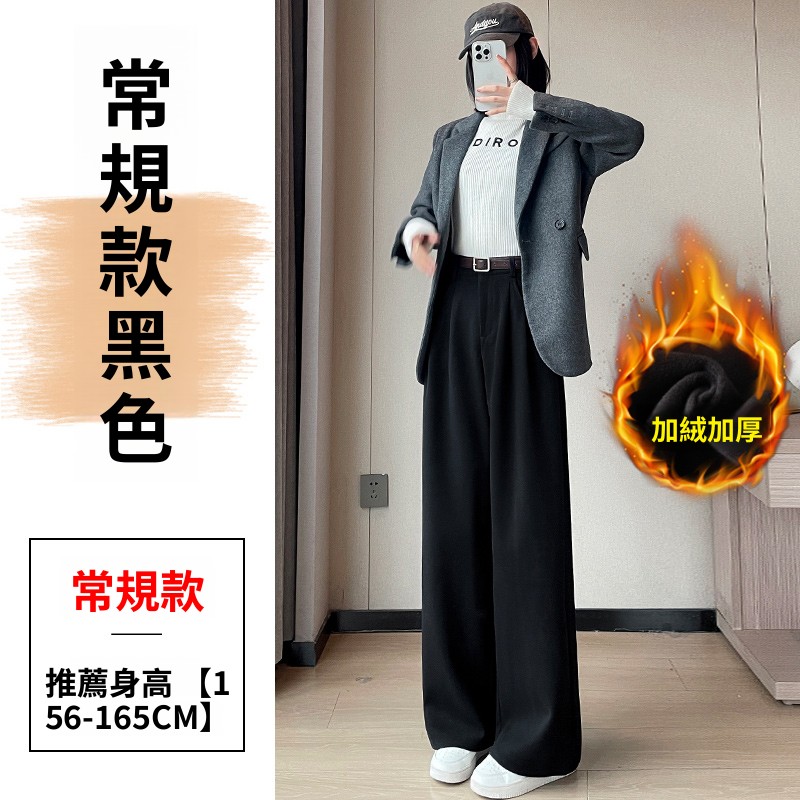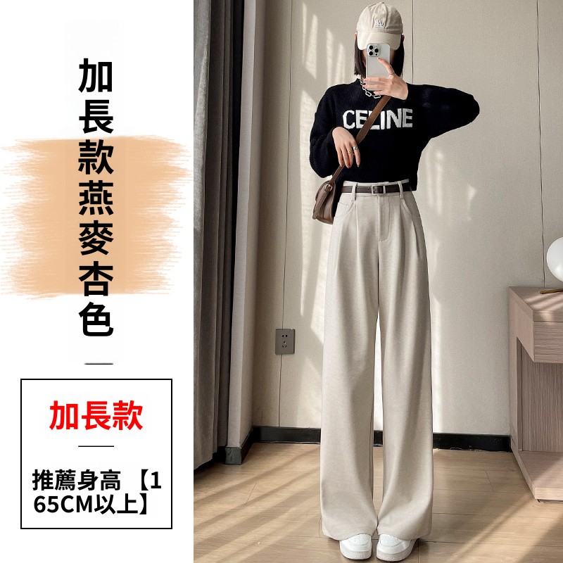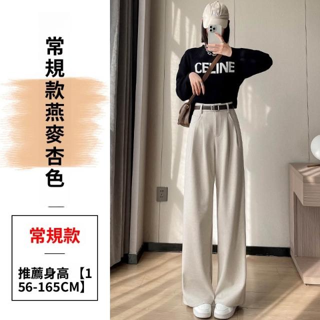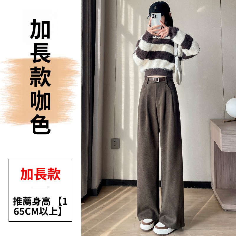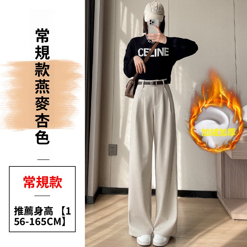 爆款 休閒 百搭 實拍秋冬新款加絨毛呢闊腿褲直筒拖地褲高腰窄版休閑褲女 優選