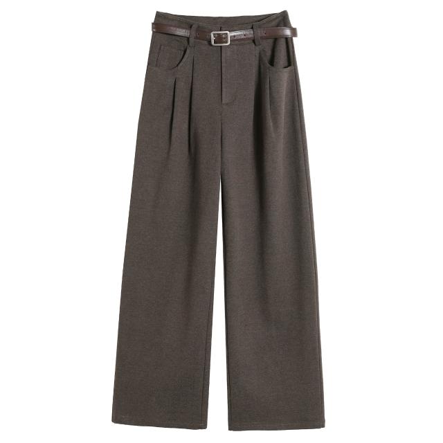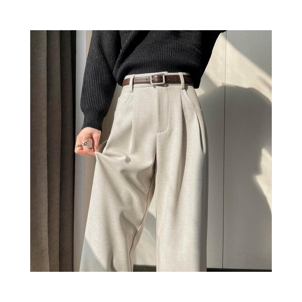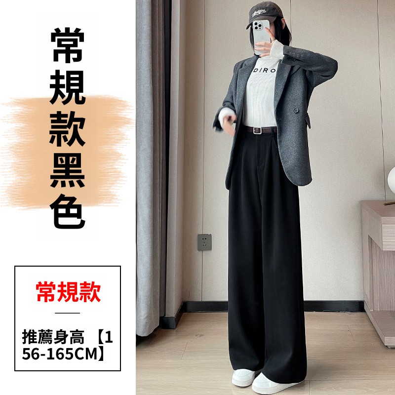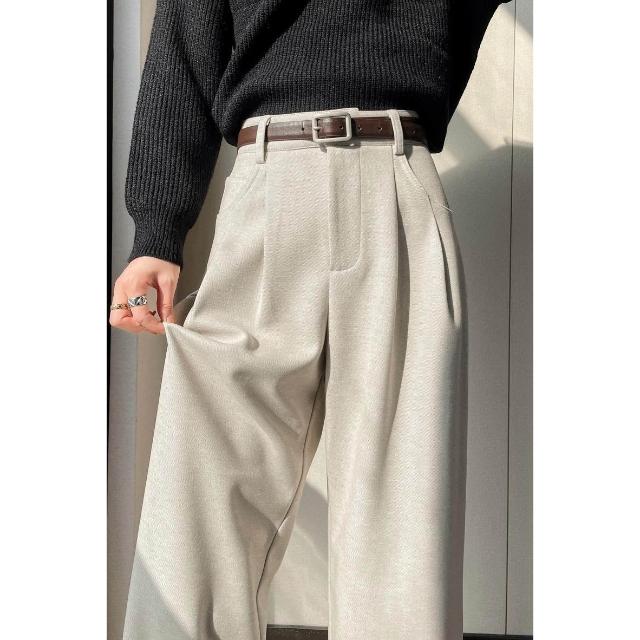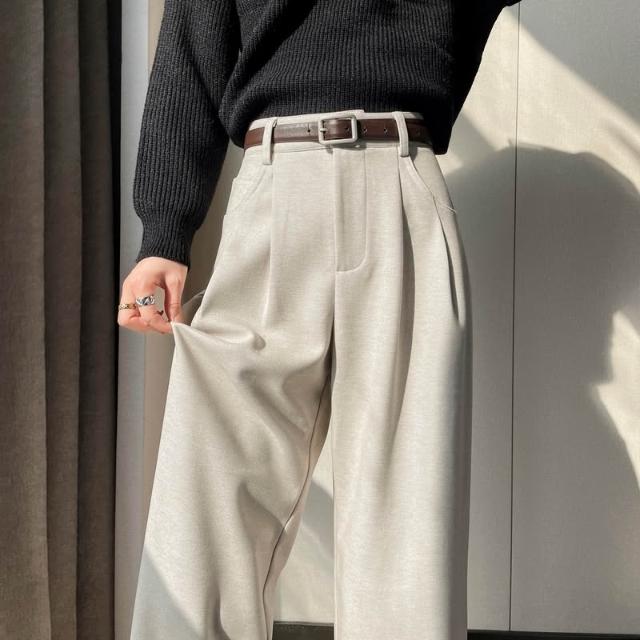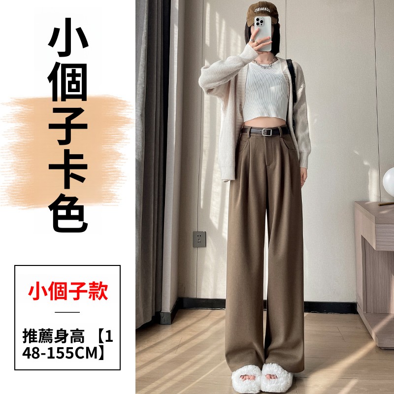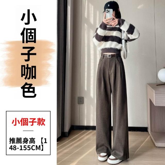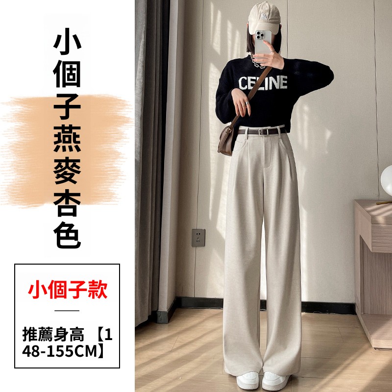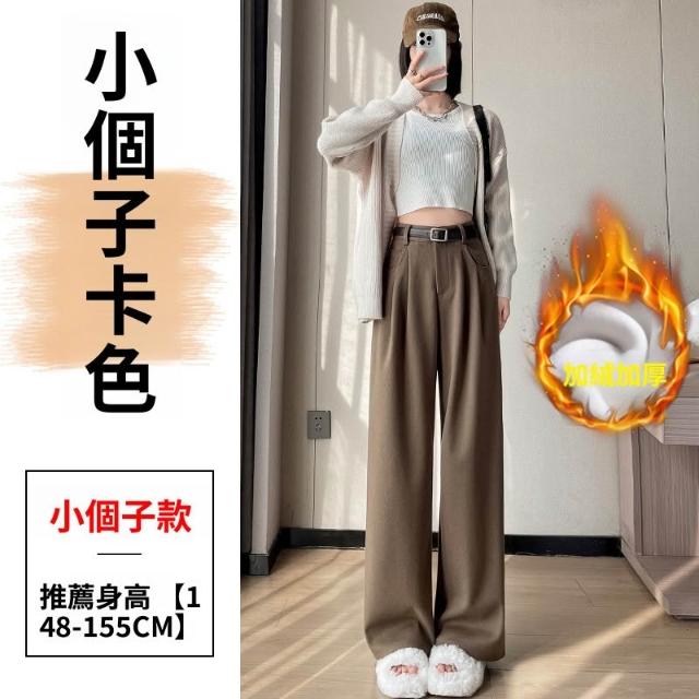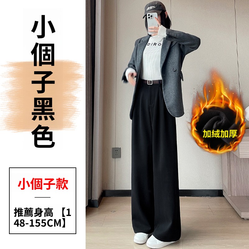 爆款 休閒 百搭 實拍秋冬新款加絨毛呢闊腿褲直筒拖地褲高腰窄版休閑褲女 優選