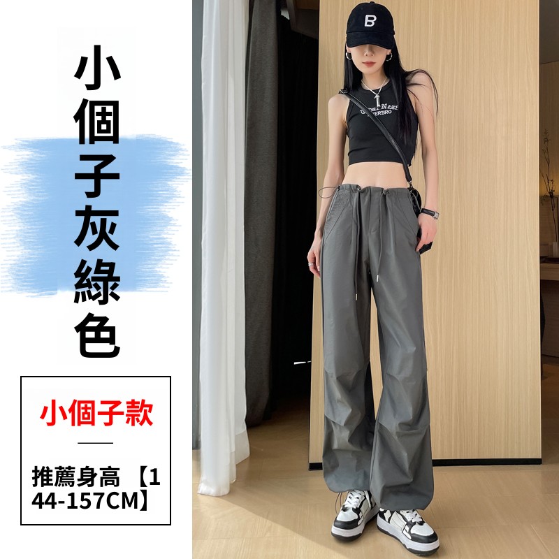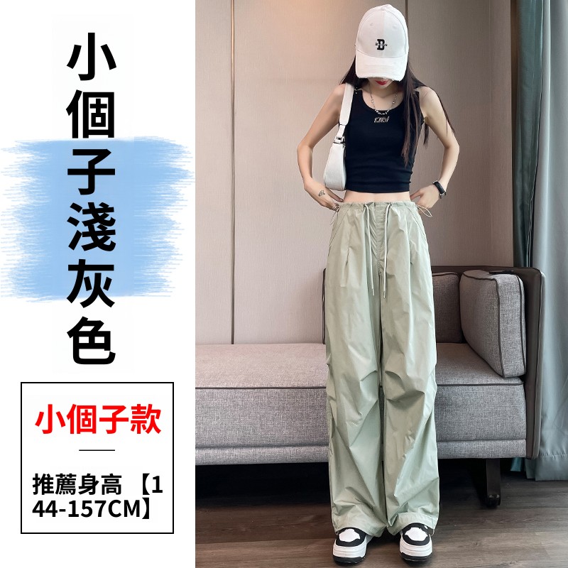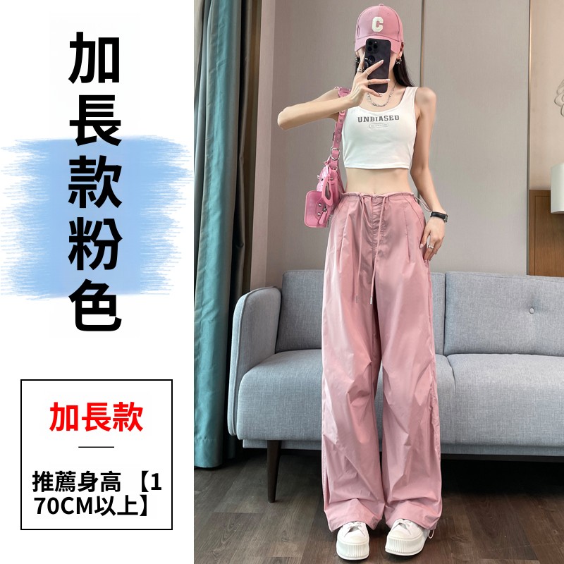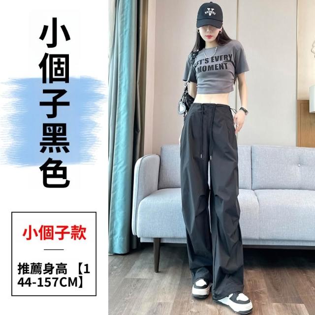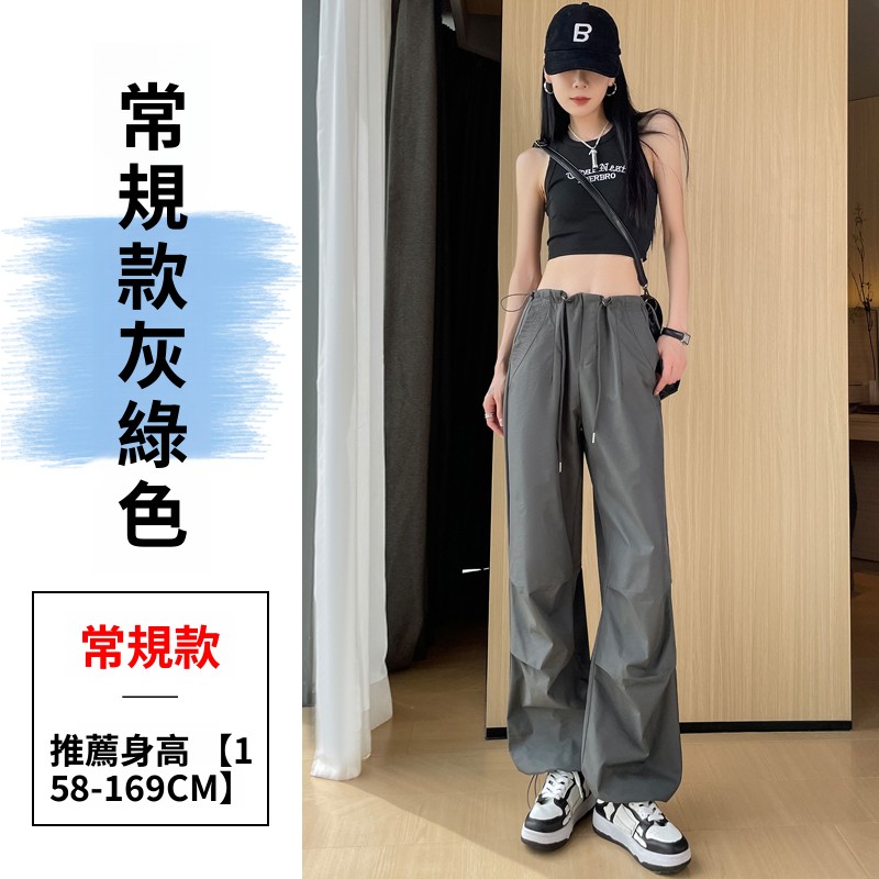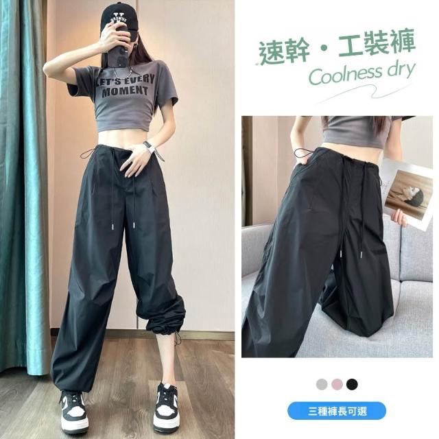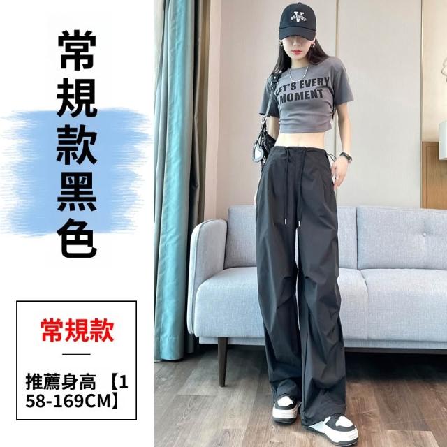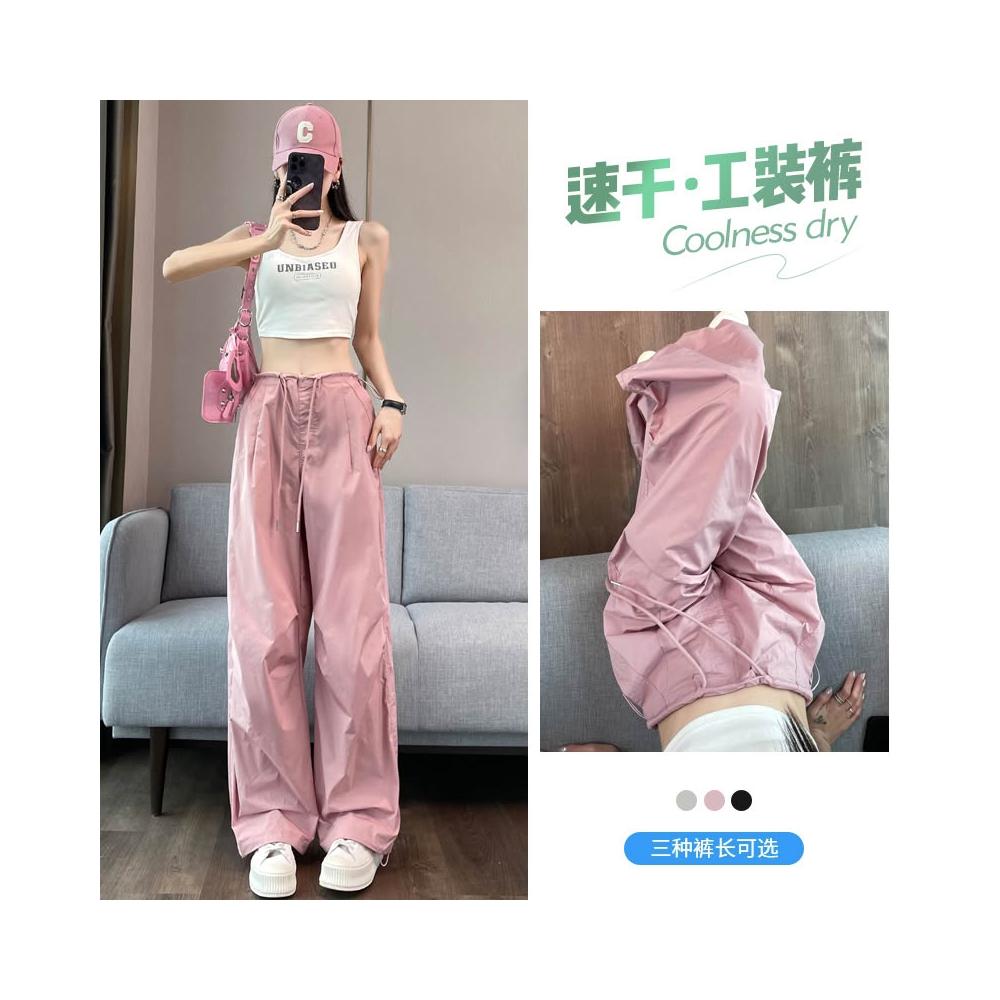 爆款 休閒 百搭 實拍冰絲速幹美式工裝褲女夏季薄款束腳闊腿高腰休閑褲運動褲 優選
