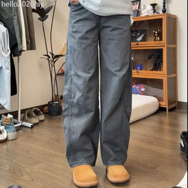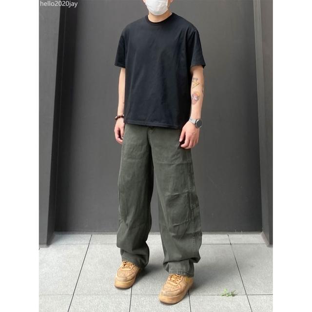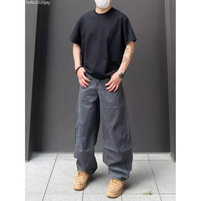 美式高街復古水洗彎刀休閒工裝褲男女夏季寬鬆闊腿百搭休閒長褲潮