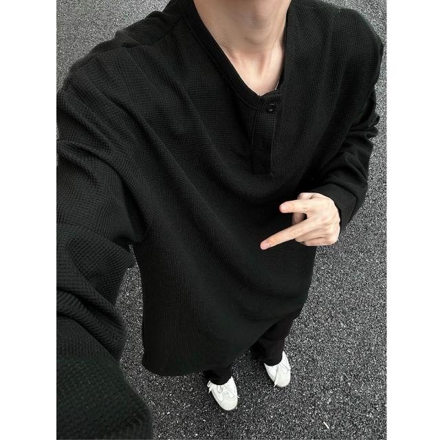 亨利領打底衫重磅長袖t卹男春秋美式街頭潮牌高級感寬鬆內搭上衣