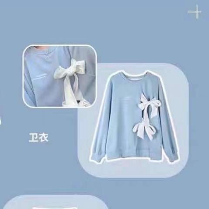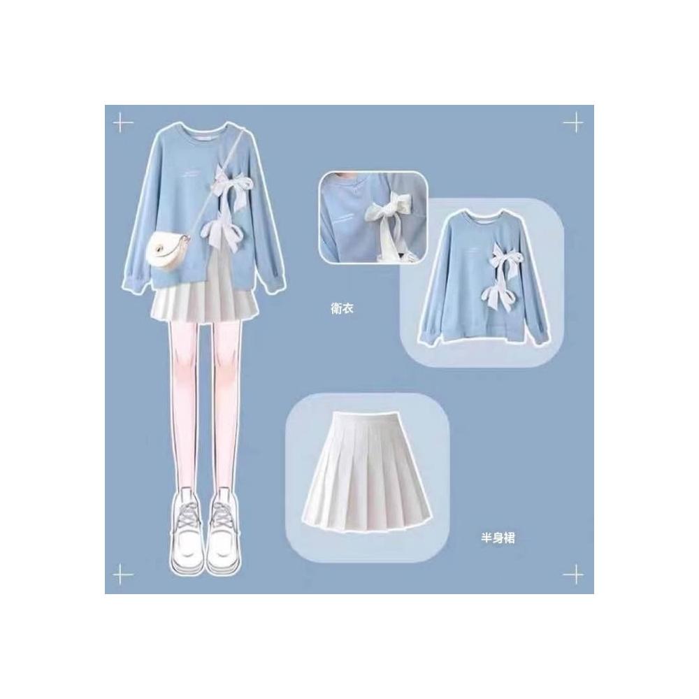 春秋時尚套裝女學生韓版寬鬆蝴蝶結超仙衛衣+白色百褶裙兩件套潮