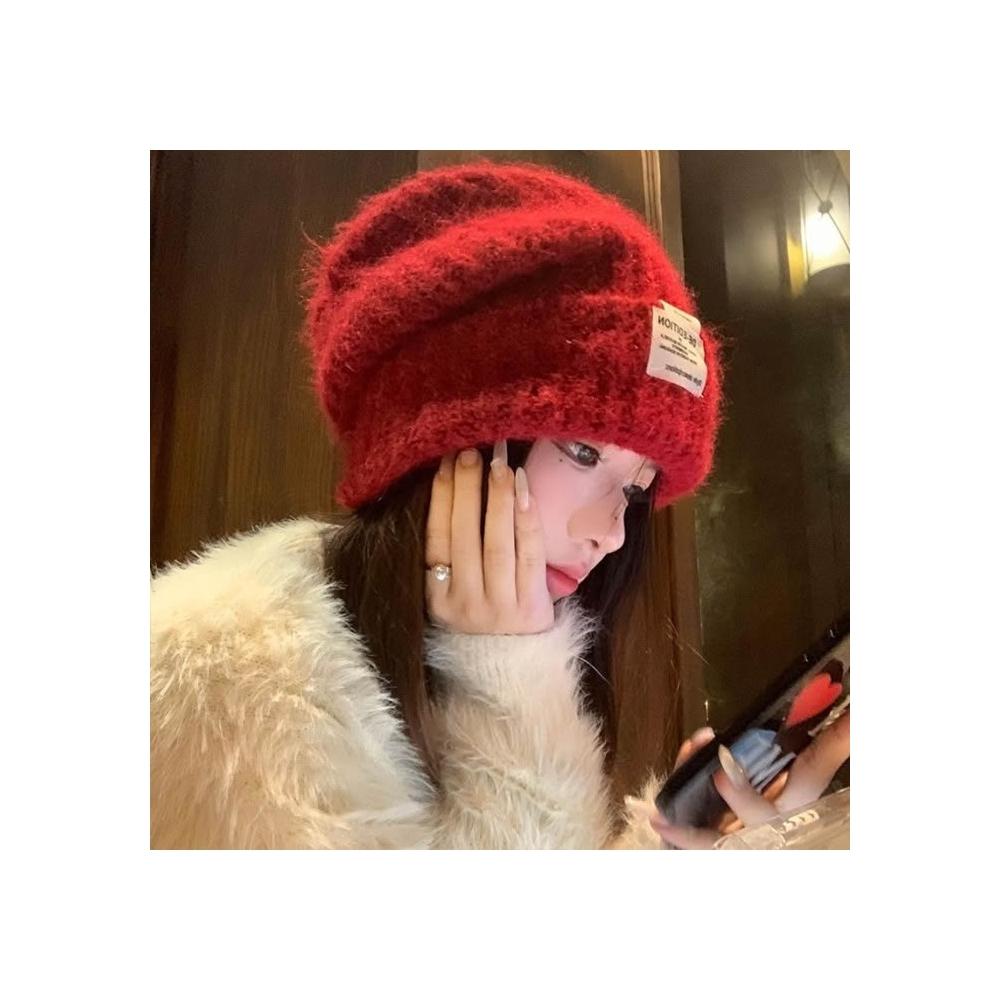 大頭圍紅色毛線帽子女2024年秋冬季百搭針織帽顯臉小保暖護耳盆帽