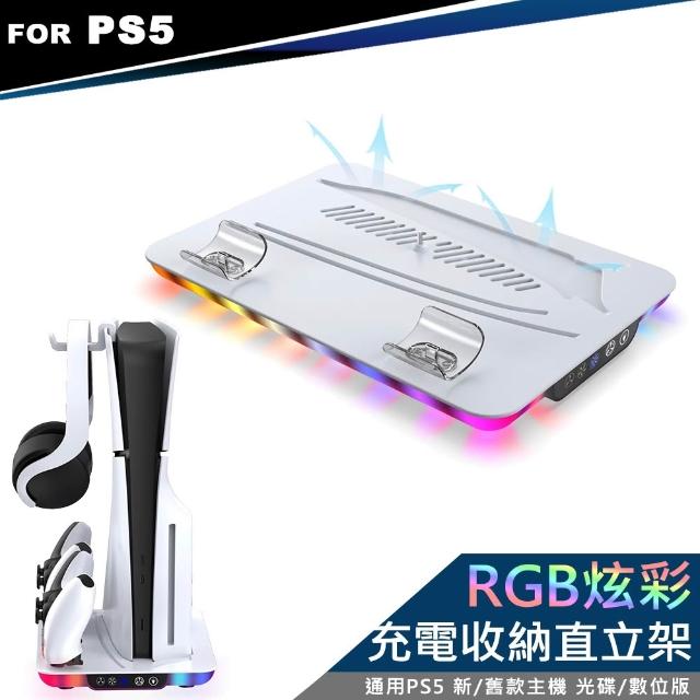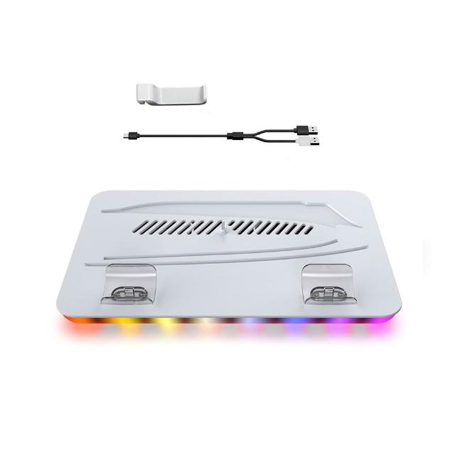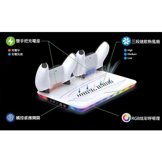 DOBEDOBE PS5主機通用 直立架 雙手把充電/散熱風扇 LED底座+耳機掛勾 (TP5-35103)[夢遊館]