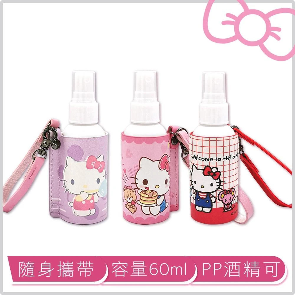 HELLO KITTYHello Kitty 隨身噴瓶收納組 5號pp噴瓶 + 皮革收納套 酒精 噴霧瓶 消毒 防疫 分裝瓶