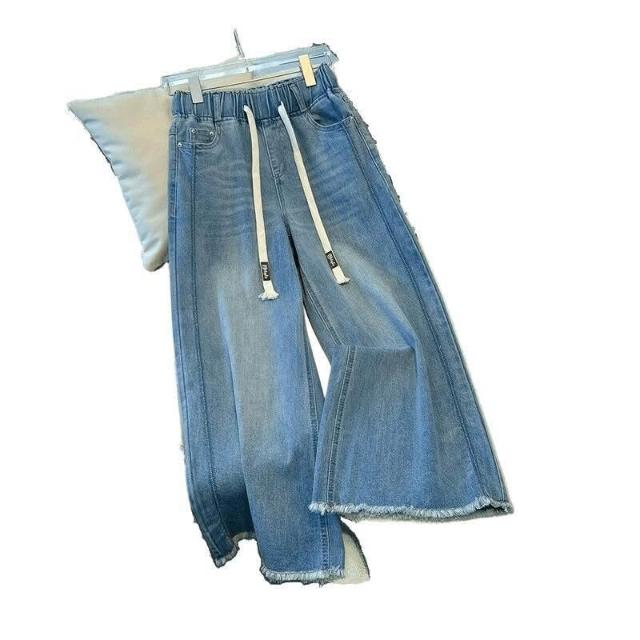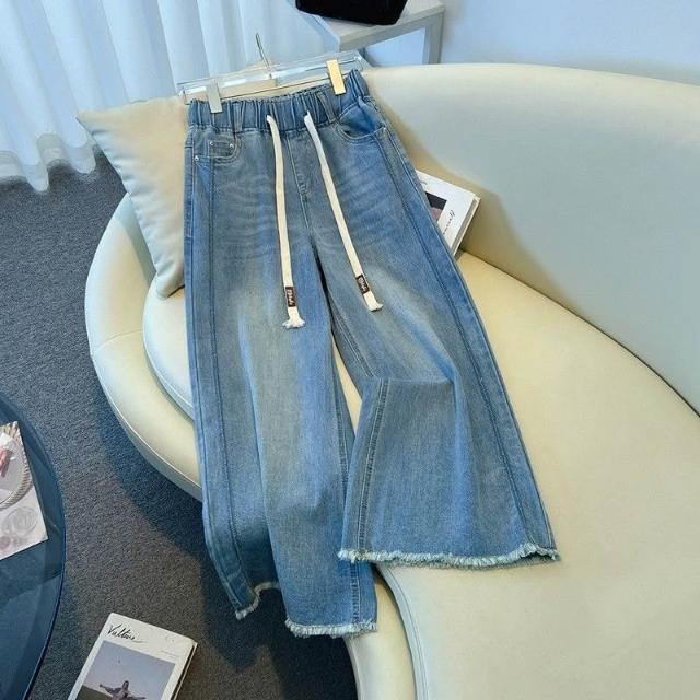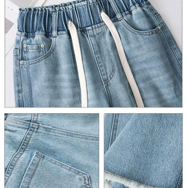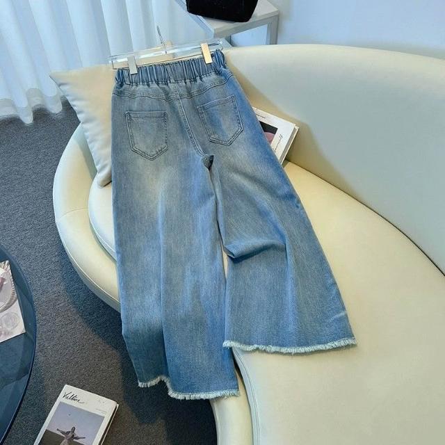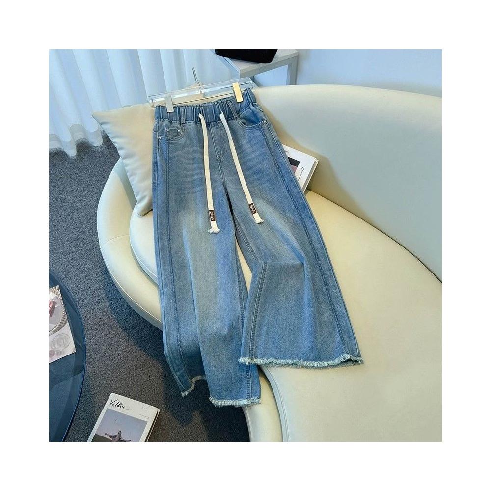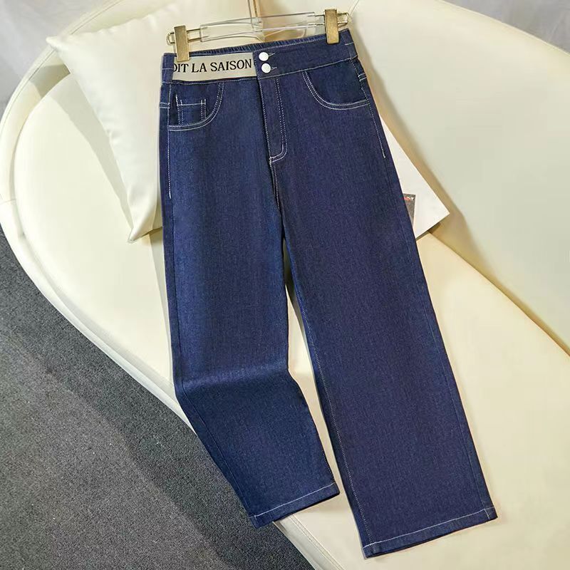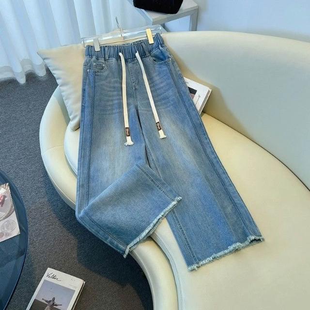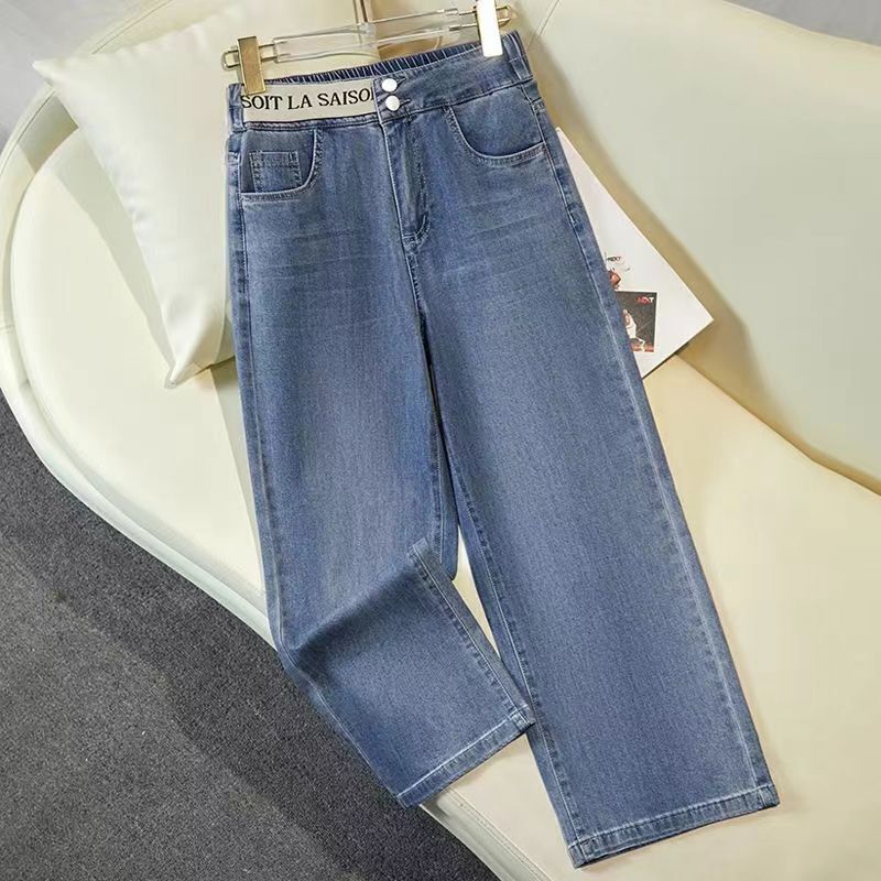 拾光衣櫥 松緊腰直筒牛仔褲女夏季新款時尚高腰顯瘦寬松闊腿褲百搭九分褲子