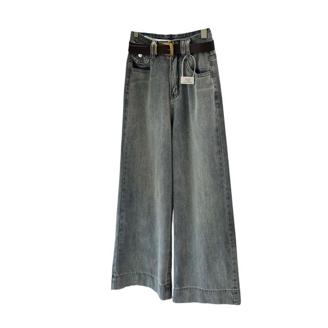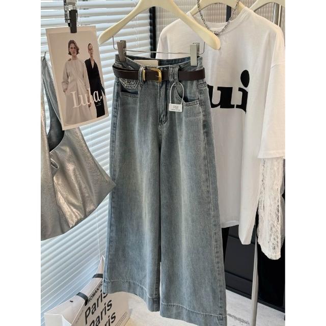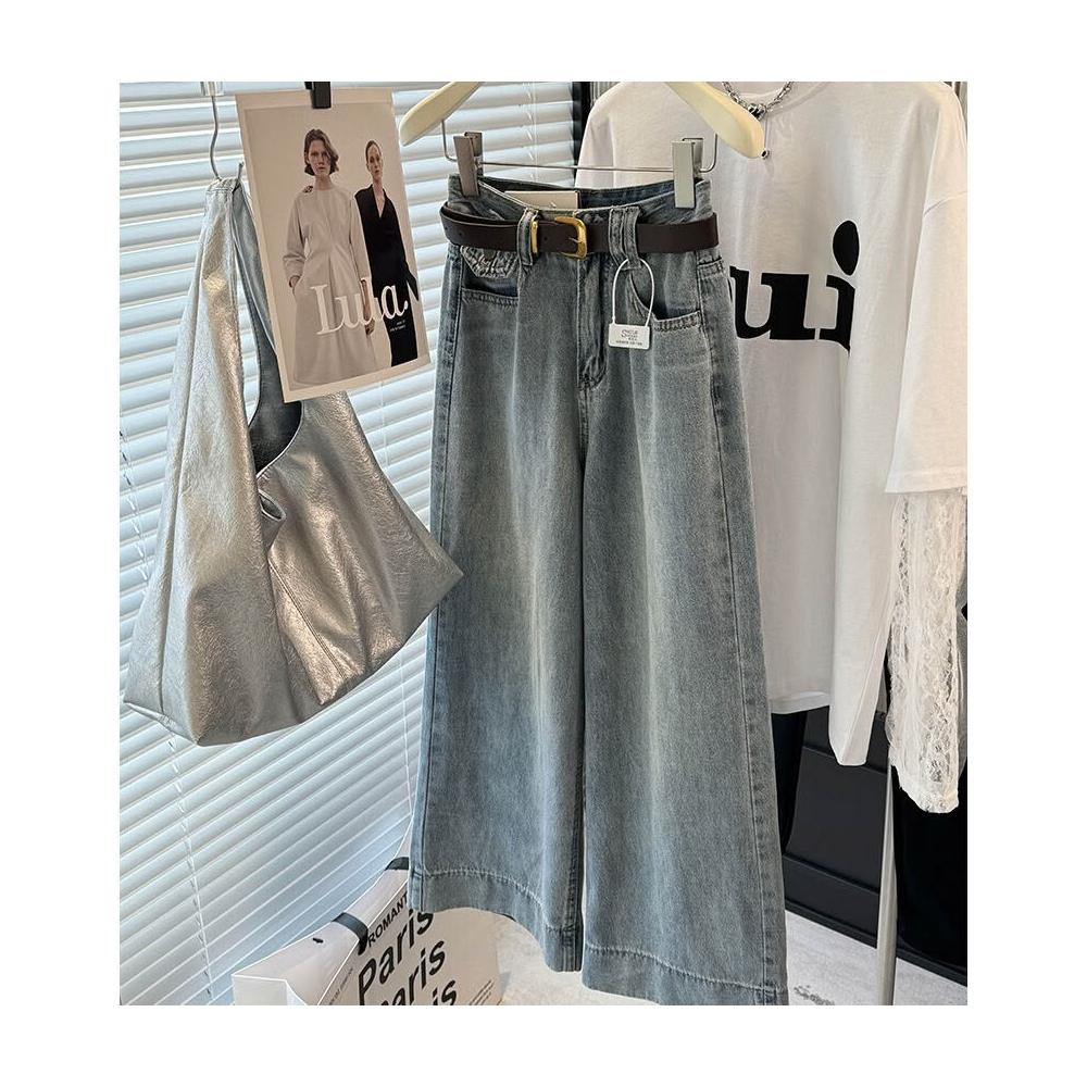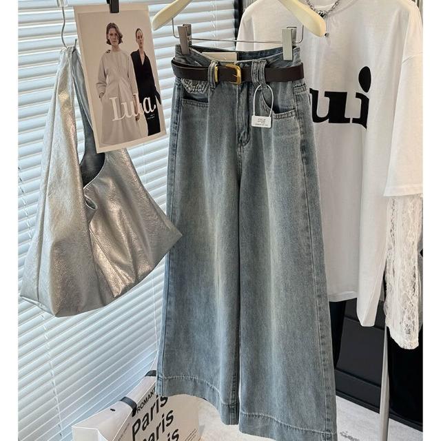 拾光衣櫥 懷舊淺藍九分牛仔褲女寬松直筒褲顯瘦窄版闊腿褲小個子九分褲子