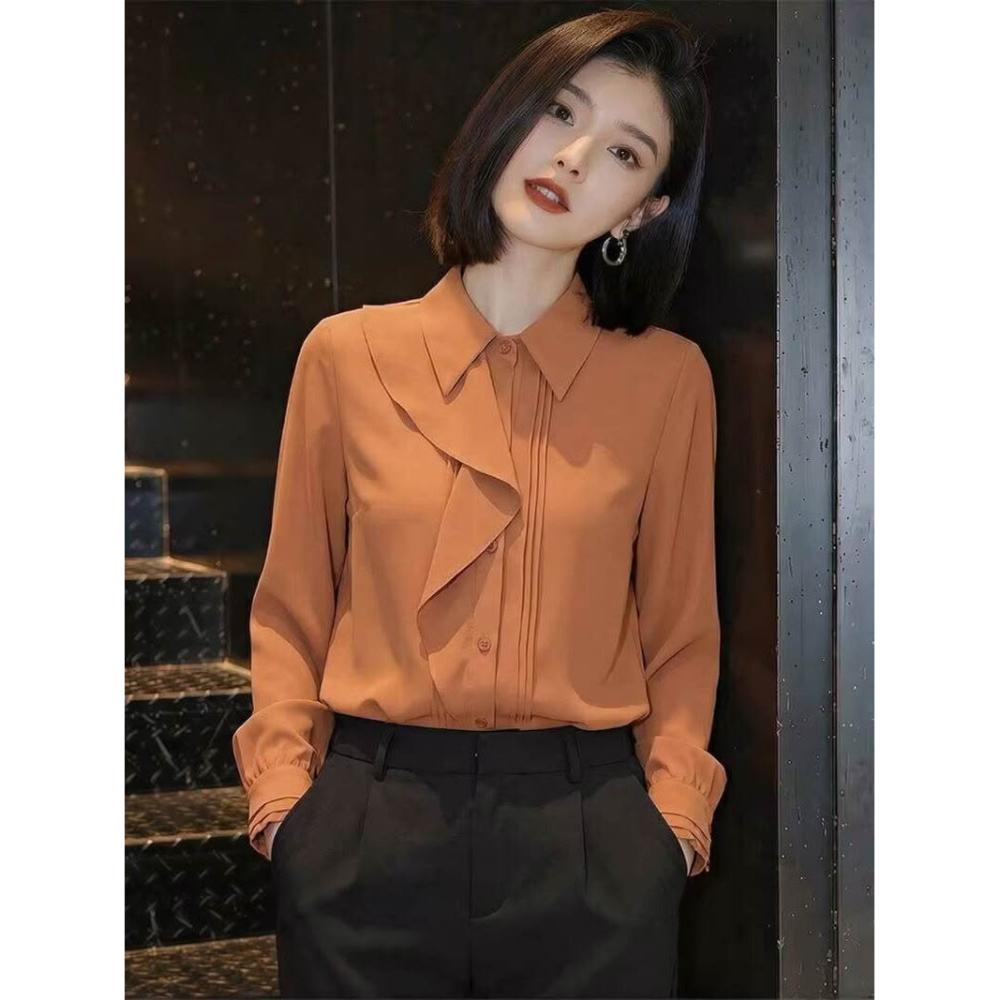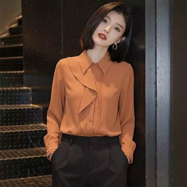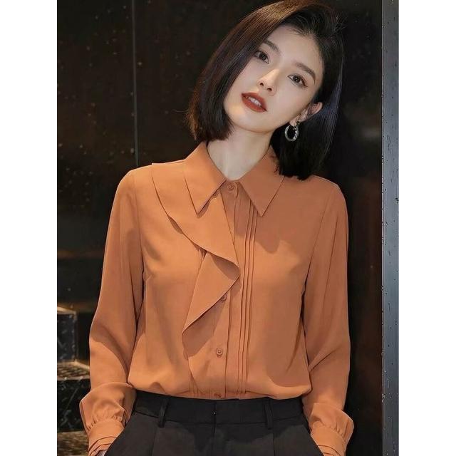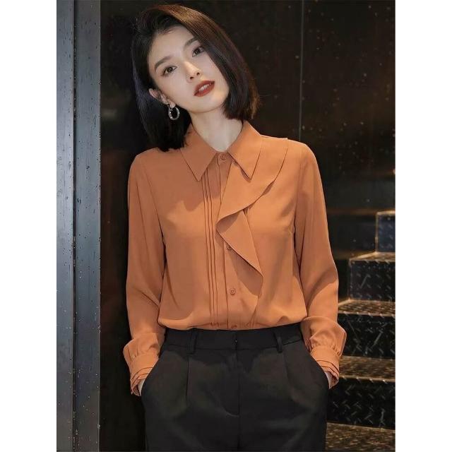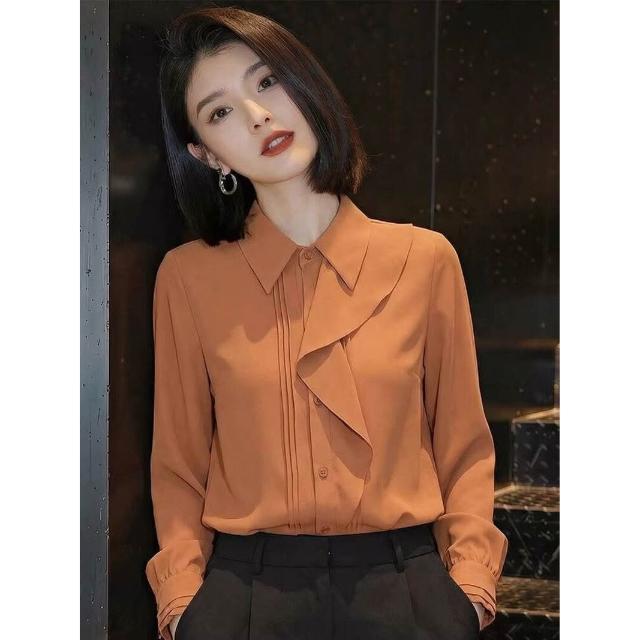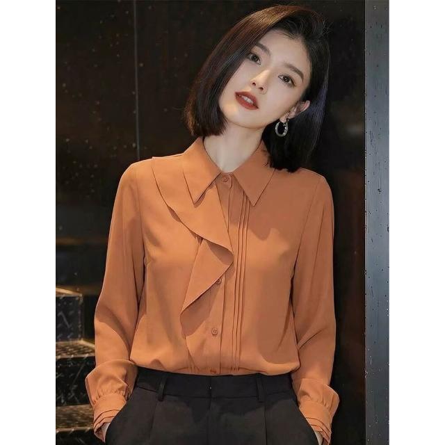 拾光衣櫥 法式長袖襯衫女士2025春季新款高級感洋氣減齡寬松顯瘦荷葉邊上衣
