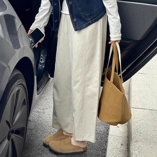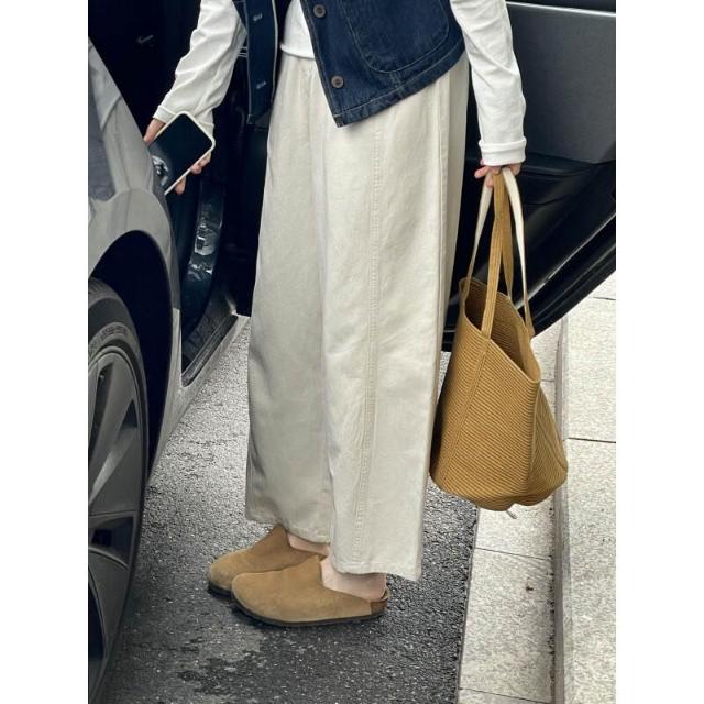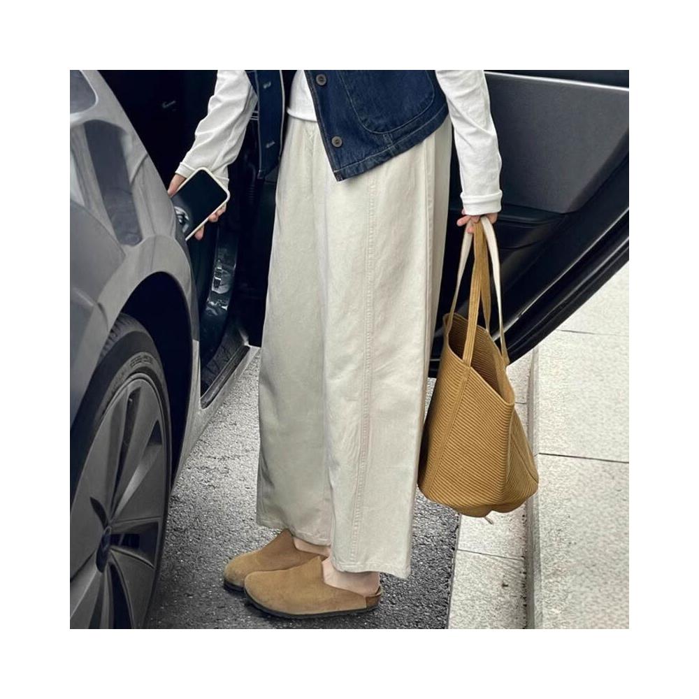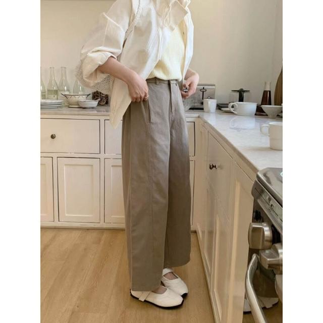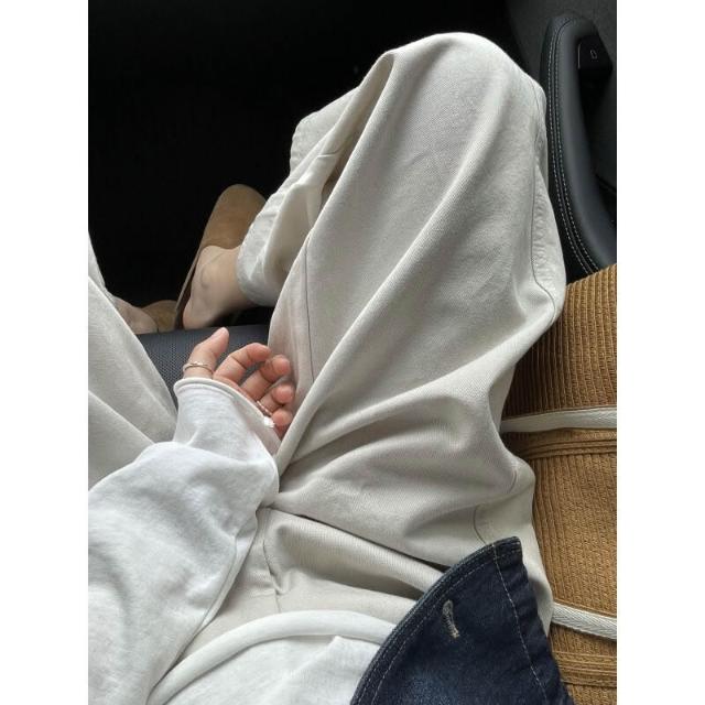 日系白色高腰棉麻工裝闊腿褲女春秋季新款九分褲寬松休閑直筒褲子 拾光衣櫥