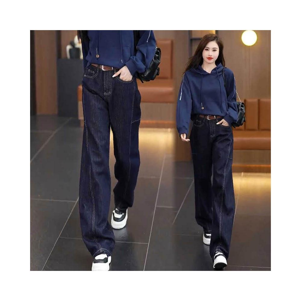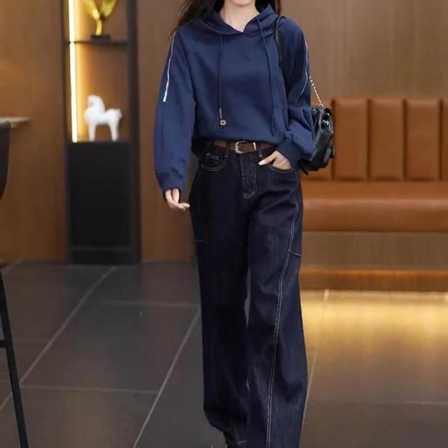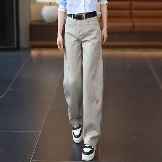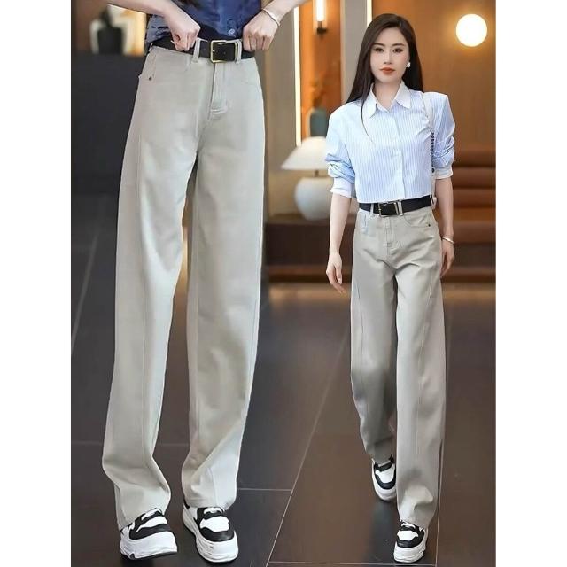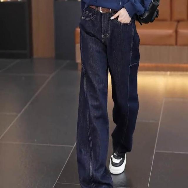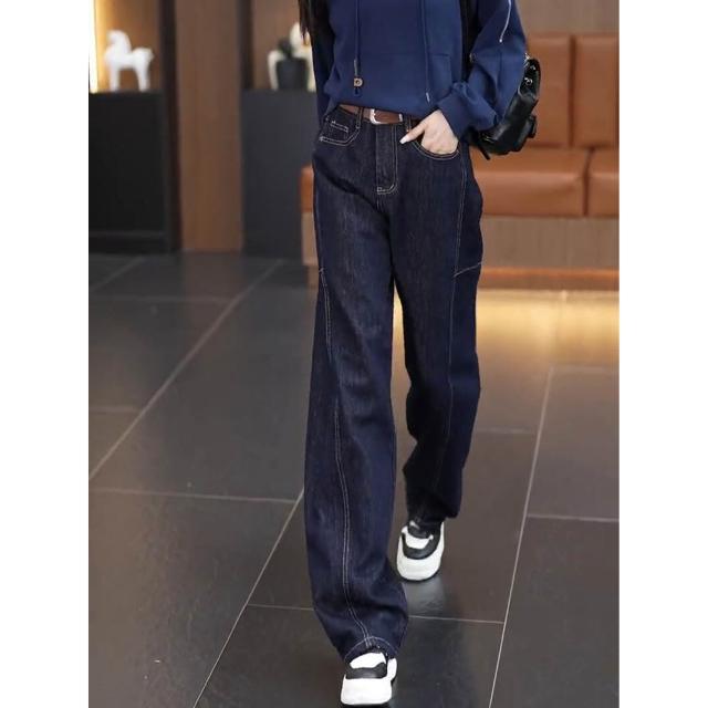 美式復古牛仔褲女春秋新款褲子高腰顯瘦窄版闊腿褲寬松休閑直筒褲 拾光衣櫥