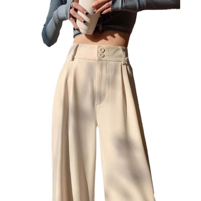 拾光衣櫥 白色西裝闊腿褲女夏2025春秋新款高腰垂感寬松休閑窄版顯瘦直筒褲