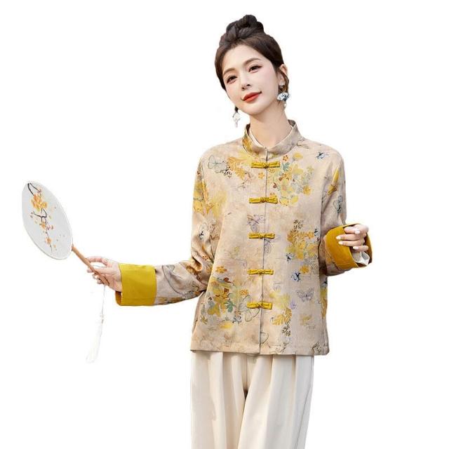 新中式國風外套女春秋小個子復古刺繡提花盤扣開衫宋錦唐裝短上衣 拾光衣櫥