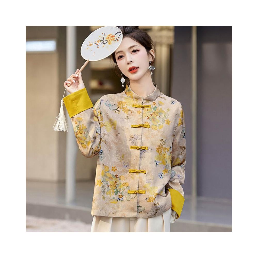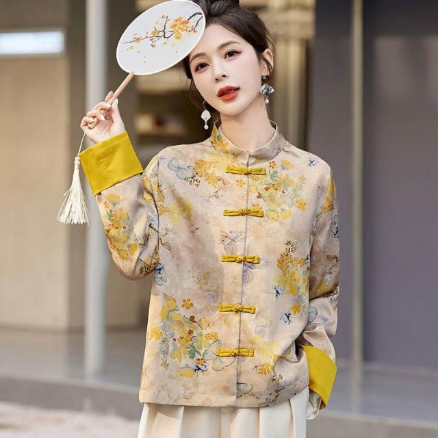 新中式國風外套女春秋小個子復古刺繡提花盤扣開衫宋錦唐裝短上衣 拾光衣櫥