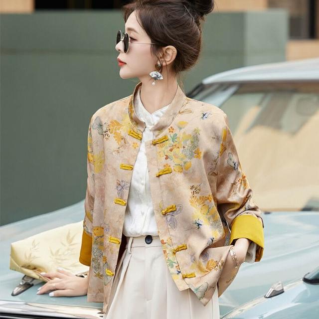 新中式國風外套女春秋小個子復古刺繡提花盤扣開衫宋錦唐裝短上衣 拾光衣櫥