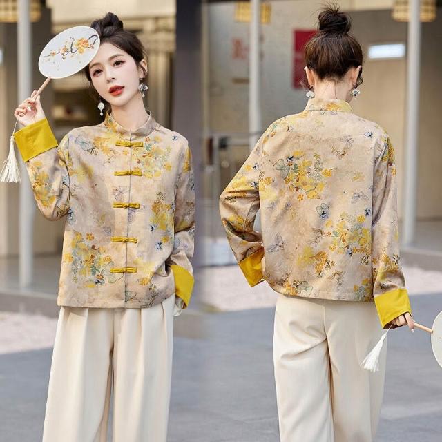 新中式國風外套女春秋小個子復古刺繡提花盤扣開衫宋錦唐裝短上衣 拾光衣櫥