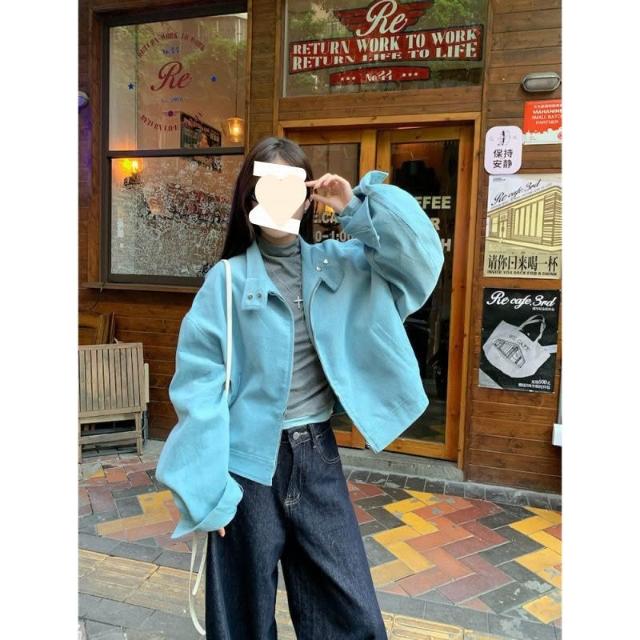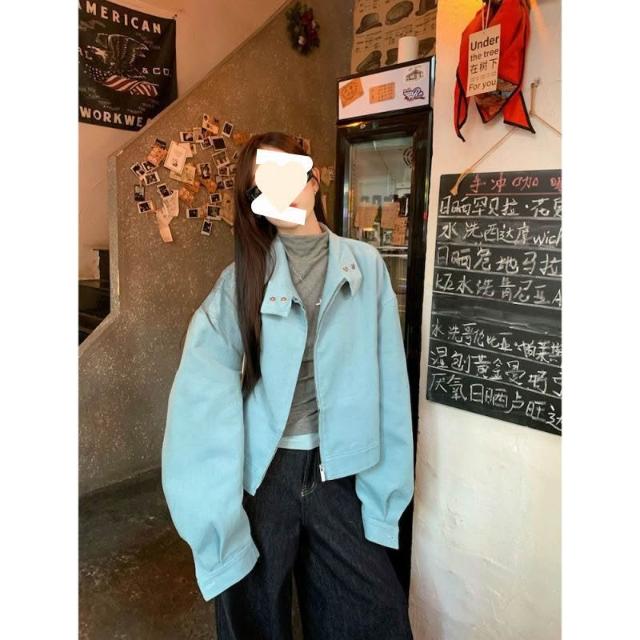 韓系時尚立領長袖短款拉鏈外套2025春季新款休閑百搭夾克上衣女潮 拾光衣櫥