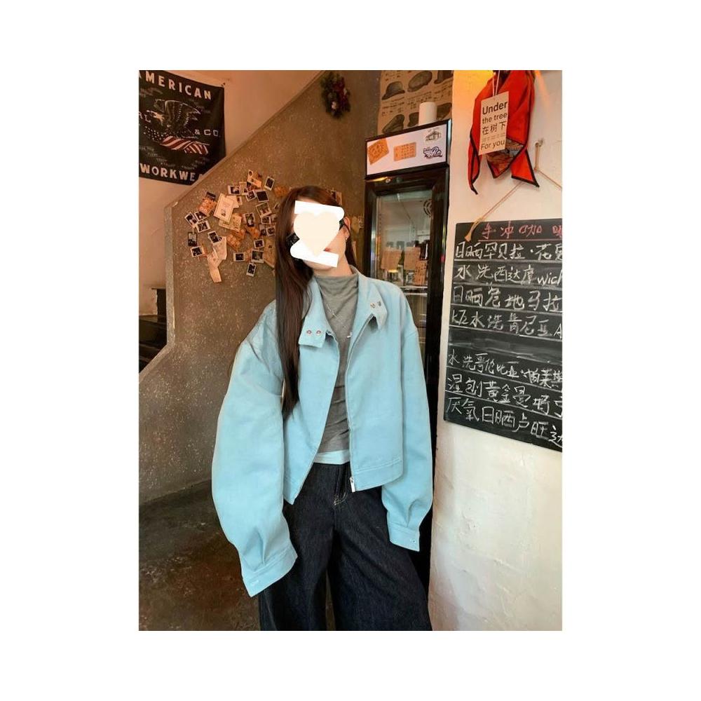 韓系時尚立領長袖短款拉鏈外套2025春季新款休閑百搭夾克上衣女潮 拾光衣櫥