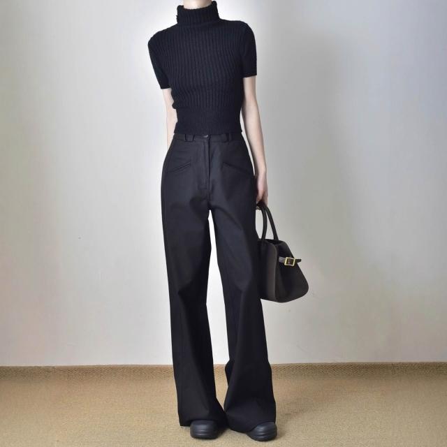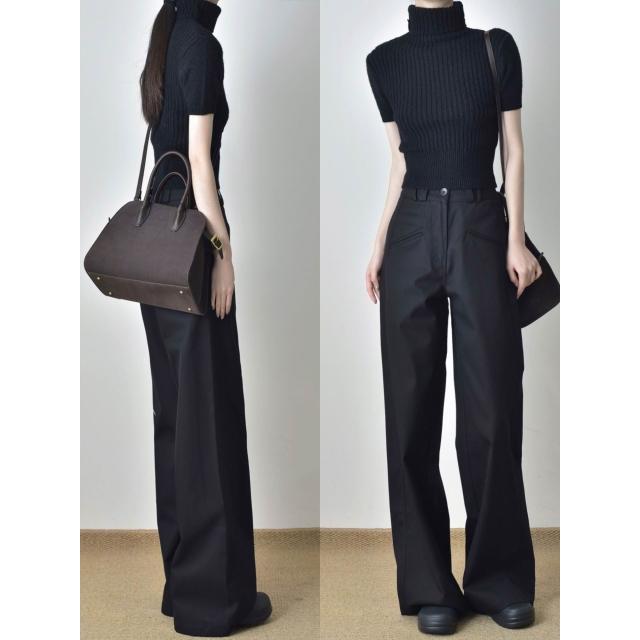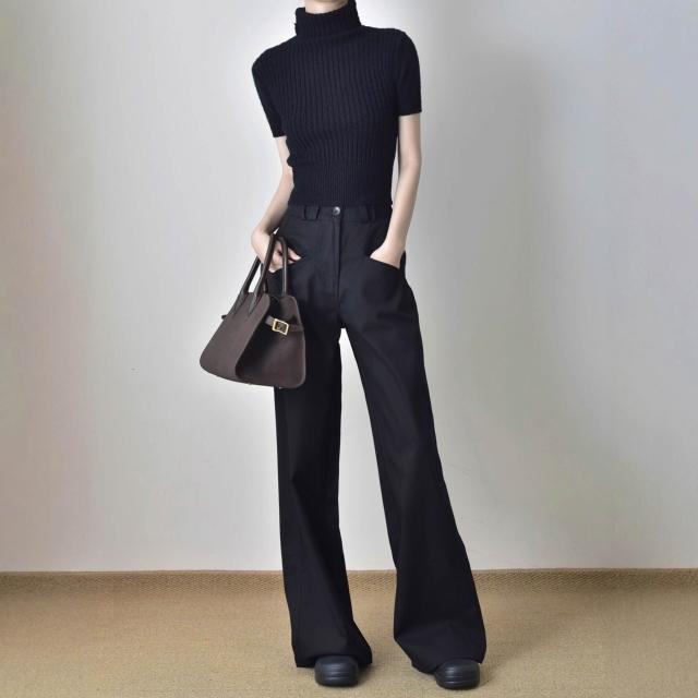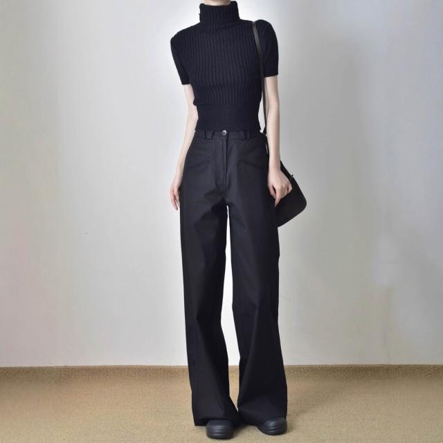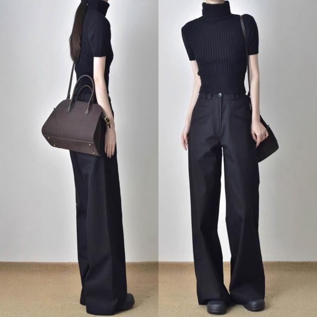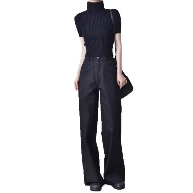 黑色垂感高腰直筒工裝褲女春秋寬松顯瘦窄版西裝褲休閑闊腿長褲子 拾光衣櫥