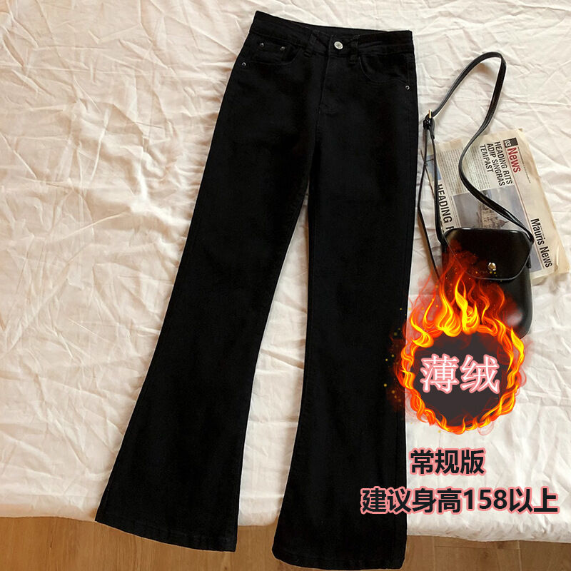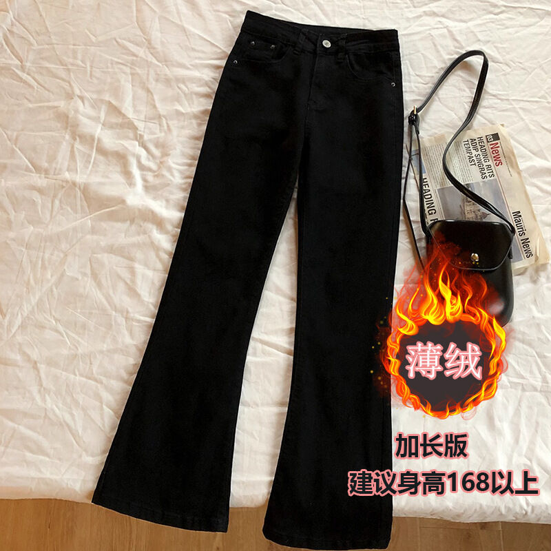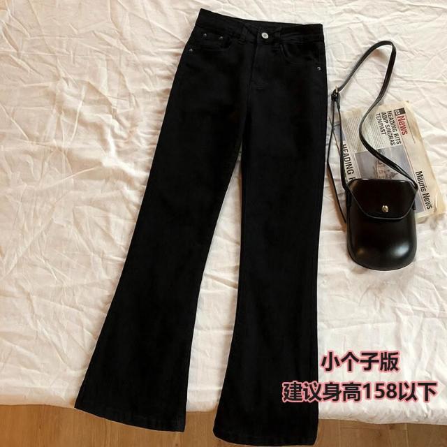 梨型身材黑色微喇牛仔褲女春秋季新款大碼胖mm高腰顯瘦彈力喇叭褲 拾光衣櫥