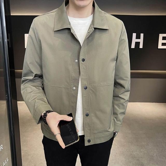 新品熱銷 男士翻領夾克2023春秋季潮流修身抗皺外套輕熟風青年秋裝工裝褂子
