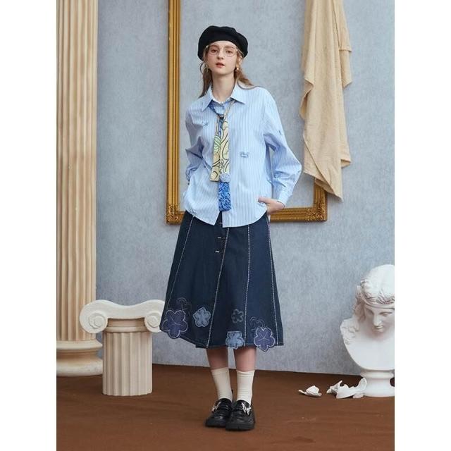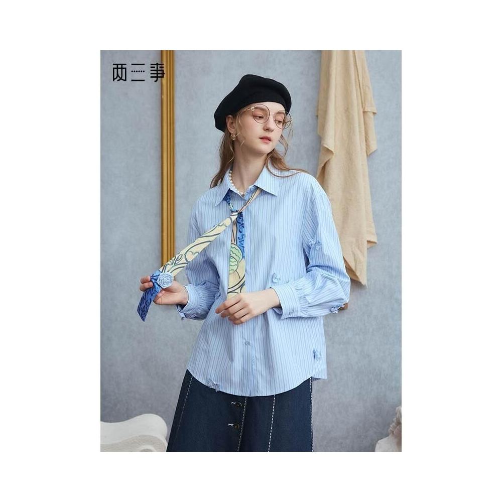 拾光衣櫥 兩三事 心情備忘錄 2025秋季新款復古印花領帶條紋長袖襯衫女通勤