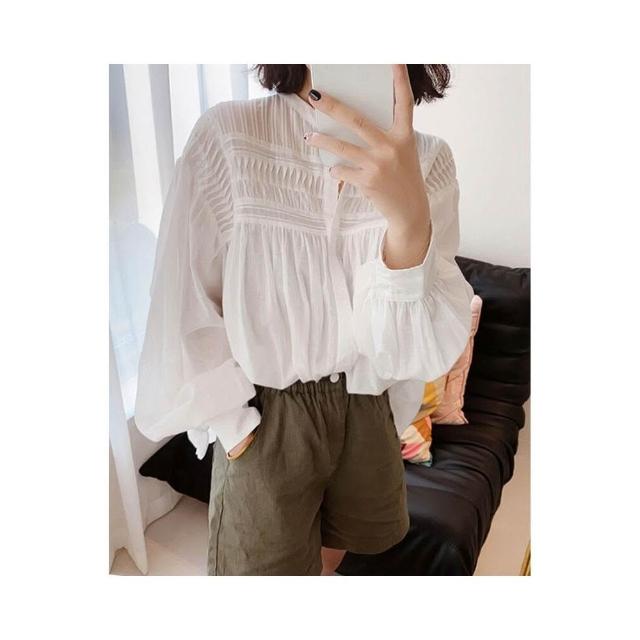 拾光衣櫥 早春新款軟綿綿的棉寬松飄逸輕薄舒適法式復古優雅高JI燈籠袖襯衫