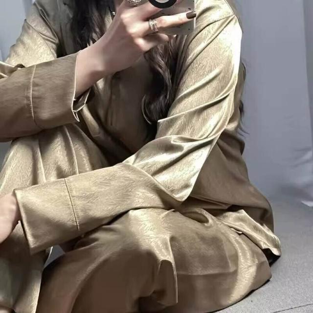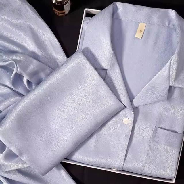 拾光衣櫥 水光綢襯衫睡衣女春秋白色長袖長褲家居服絲綢冰絲套裝大碼夏胖MM
