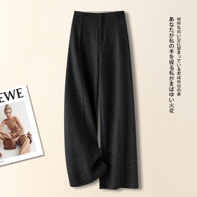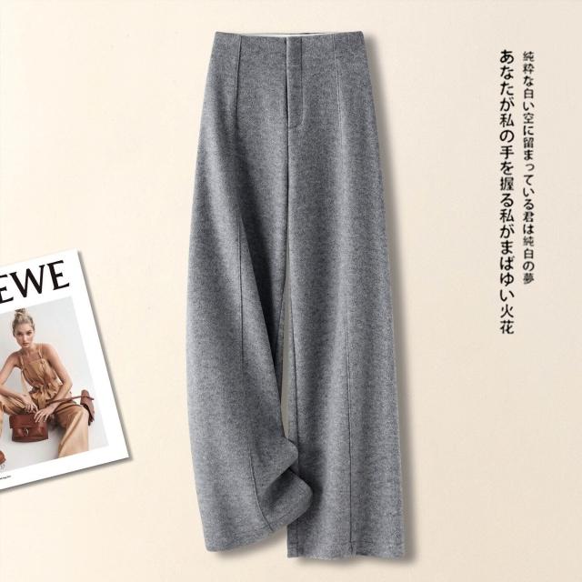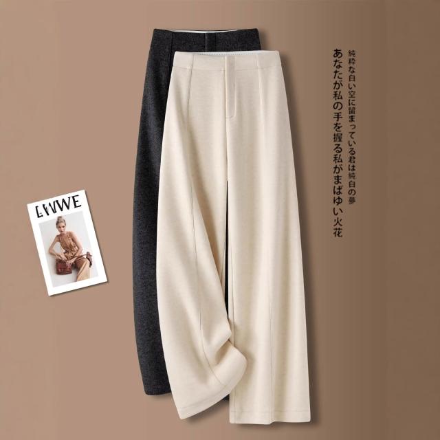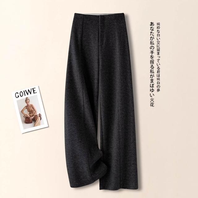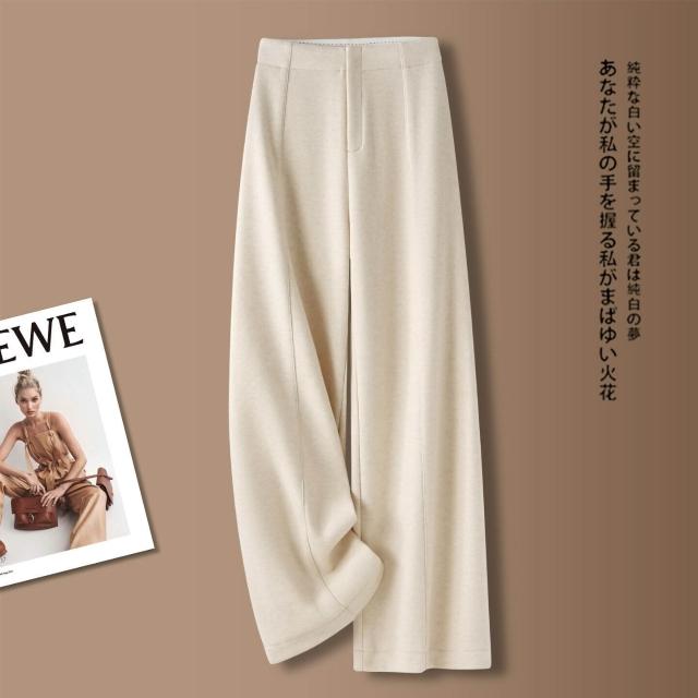 拾光衣櫥 米白色羊毛闊腿褲女春秋冬季2026新款慵懶風松弛感休閑寬松直筒褲