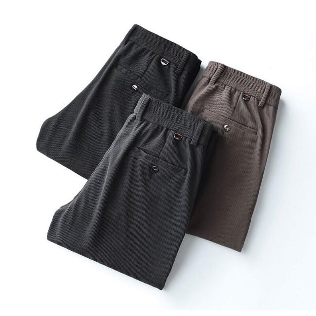 拾光衣櫥 高端燈芯絨休閑褲男土春秋季寬松直筒男褲商務條絨褲中年爸爸褲子